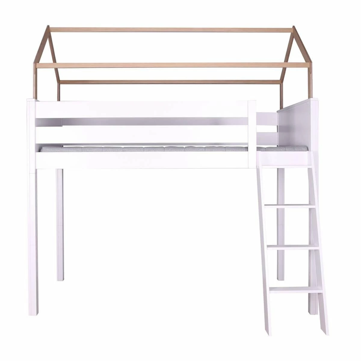 ¡Cama alta con protección anticaídas alta, la solución perfecta si necesitas más espacio debajo de la cama! Incluye un divertido techo en forma de casita, que puedes cubrir con telas de alegres colores (disponibles por separado y crear un acogedor refugio para que tu peque pueda relajarse, leer, jugar o inventar miles de aventuras. Debajo de la cama tienes mucho espacio para crear un cómodo rincón de juegos, una zona de estudio, o si necesitas almacenamiento adicional puedes colocar las prácticas y decorativas estanterías de la misma colección ¡las posibilidades de aprovechamiento son infinitas!
