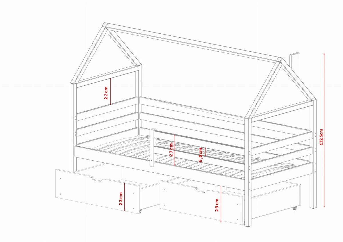 Una noche tranquila en una cuna de arónLa cama de la casa para niños Aron von Furnlux es el sueño de un niño. Es un mueble en forma que fomentará la creatividad de cada niño pequeño. Un diseño bien pensado, alta durabilidad y estabilidad garantizan años de uso y sonrisa sin problemas de su hijo todos los días.Todas las posibilidades de la cuna AronEn Furnlux no solo prestamos atención al aspecto, sino también a la funcionalidad. El Aron Cot no solo es un mueble cómodo para dormir, sino también la oportunidad de guardar los accesorios de varios niños. Hay suficiente espacio debajo de la cama para un espacioso cajón. También puede comprarlo configurando el producto. Relajación divertida y acogedora garantizada.