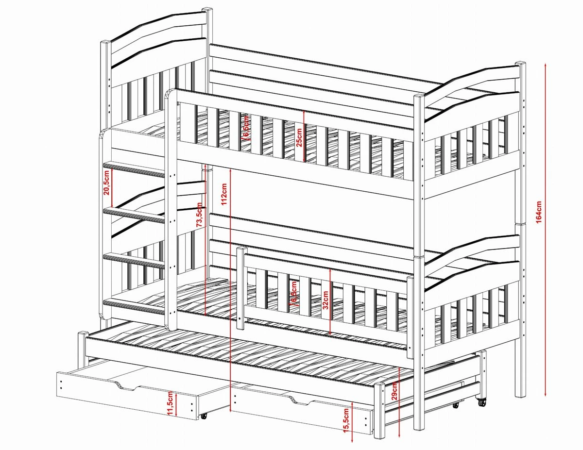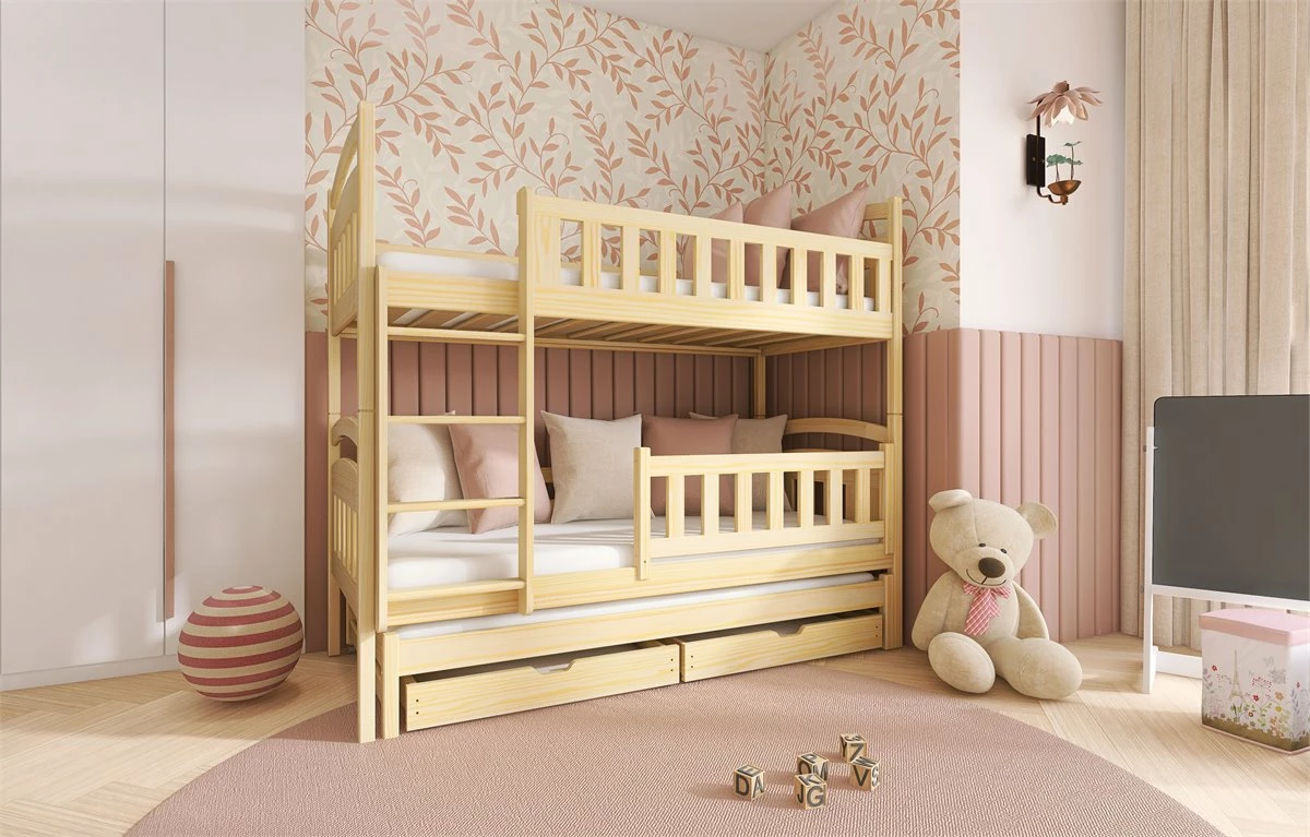 ¿Es la litera Blanka una buena opción para los niños en edad preescolar? Ciertamente no te arrepentirás de esta compraDormir en su propia cama y la mudanza de la habitación de los padres se vuelve más estresante cuando la encantadora litera Blanka te está esperando en la habitación de los niños. La construcción de madera maciza garantiza la seguridad y los hermosos colores aseguran que la sonrisa no desaparezca de la cara del niño cuando te duermes