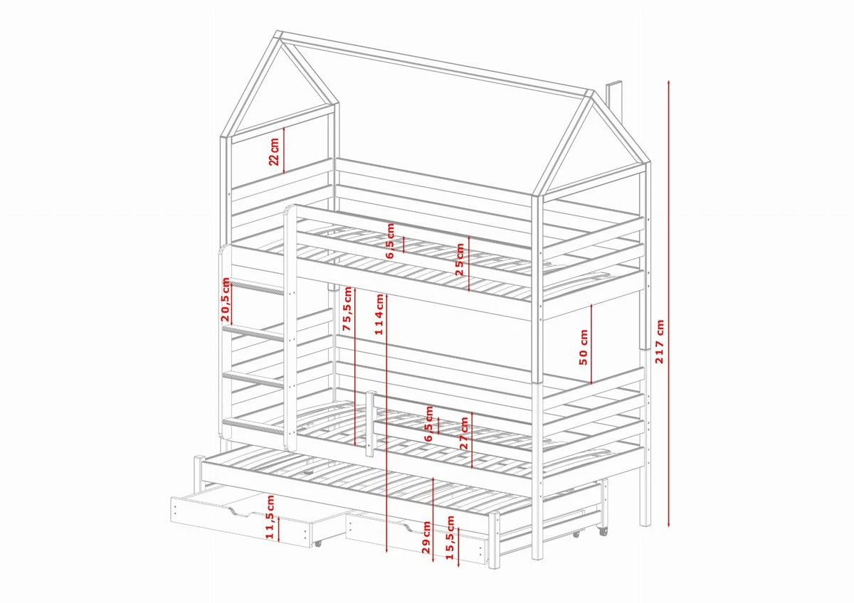 Práctico, seguro y cómodo: conozca la litera de DaliaJugar la casa o pasar muchas horas en una casa en el árbol se encuentran entre nuestros recuerdos favoritos de la infancia. En vista de estos momentos, ¡hemos creado una cama flotante de Dalia que ofrece espacio para hasta tres niños! Los muebles tienen dos pisos y una parte parcial adicional que también es adecuada para los más pequeños. Y si es hora de una reorganización, ¡puedes dividir la cama en mazos independientes!