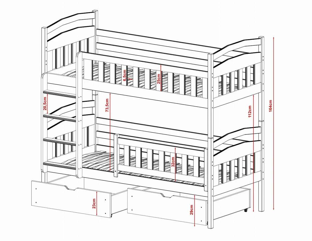 Descubre la litera única ignasSi tienes hermanos en casa que comparten una habitación, estamos seguros de que sueñas con una cama de cáscara de Ignaś. El diseño minimalista, una escala cómoda y una barandilla en ambas camas lo convierten en un mueble que también puede ser utilizado por niños más pequeños.Litera de andaś: una garantía para una construcción seguraNuestra litera de Ignaś está hecha con amor por el más pequeño detalle. Los bordes redondeados aseguran que sus hijos no se lastimen incluso en el juego más loco. Tanto la cama superior como la parte inferior están equipadas con una barandilla de madera que protege a los pequeños de la cama cuando duermen.