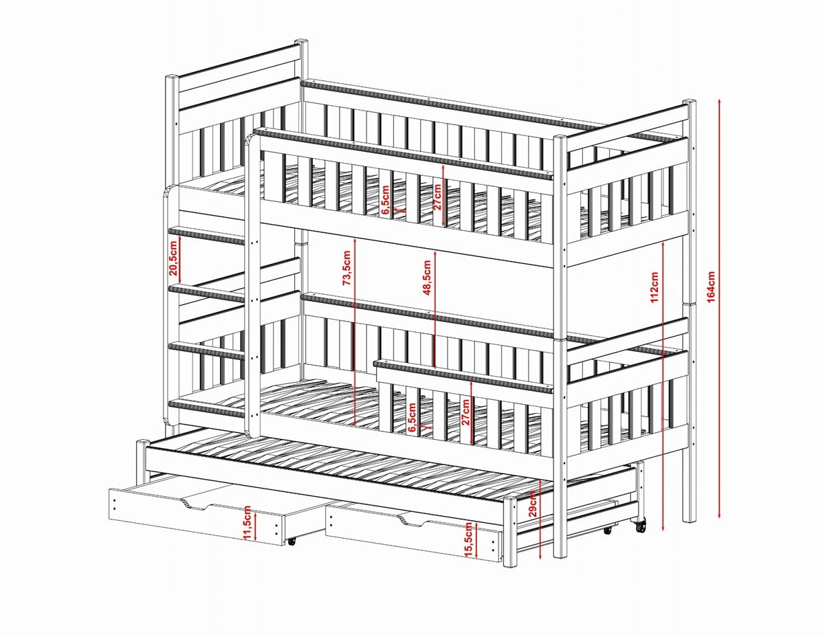 Cors litera: la opción perfecta para una habitación para niñosLa litera de Furnlux se caracteriza por un diseño simple, de modo que funcione bien en muebles clásicos y modernos de una habitación para niños. Esta cama de 3 personas con un colchón adicional en una superficie de mentira retráctil es el lugar perfecto para relajarse y jugar. El marco está hecho de madera de pino natural, que está cubierta de color antialérgico. Sus hijos dormirán con calma y no tiene que preocuparse por su salud y seguridad. Con la litera Cors, el mobiliario de la habitación de un niño se convierte en el juego del niño.
