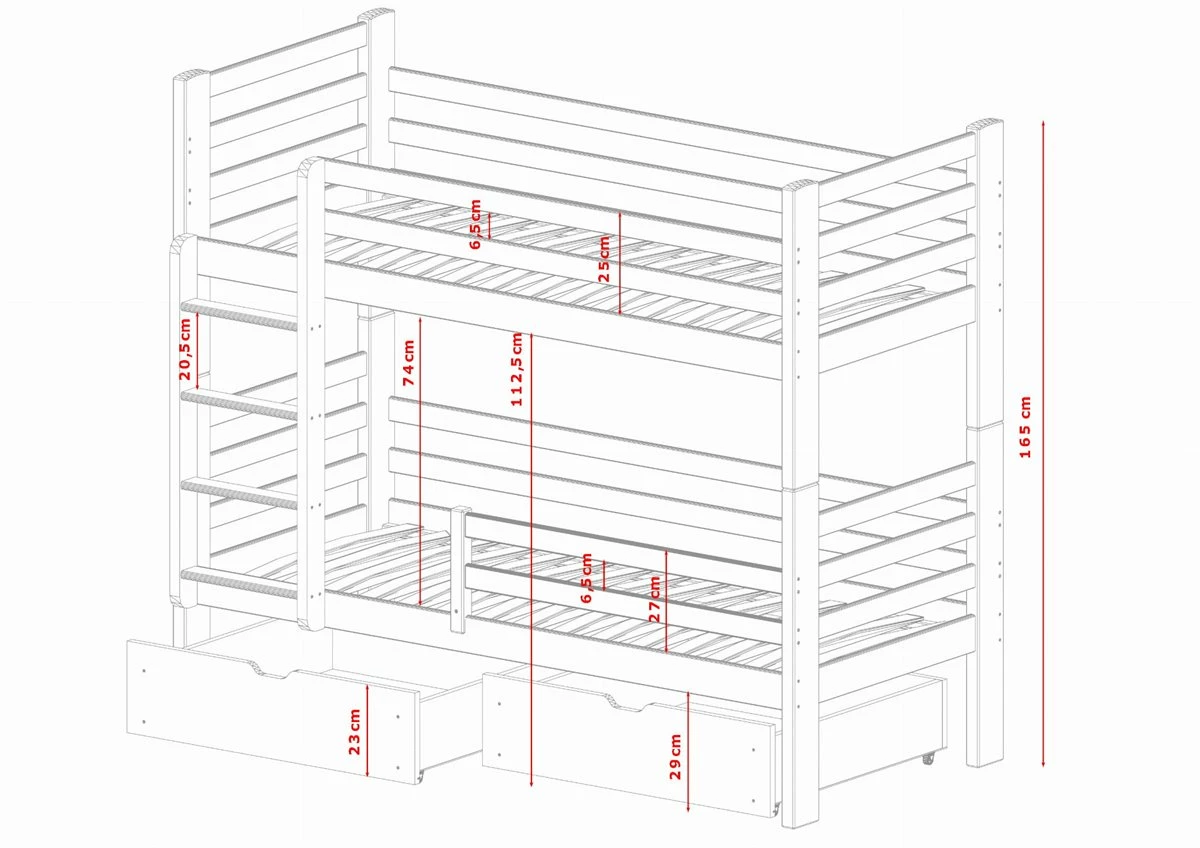 La litera de Patryk creará un paisaje encantador para dormir en la habitación de su hijoLa litera Patryk de Furnlux es una solución perfecta para cada sala de niños y jóvenes que amará a su niño pequeño. Gracias a su diseño moderno y universal, encaja en cada interior y arreglo. Todos los bordes están redondeados para aún más seguridad y los materiales utilizados son amigables para los niños.¿Qué distingue la litera de Patryk de otros disponibles en el mercado?Casi todos los niños sueñan con una litera. Aparece en los sueños más secretos. No solo ofrece la posibilidad de dormir cómodo, tranquilo y seguro, sino también de mucha diversión jugando durante el día.