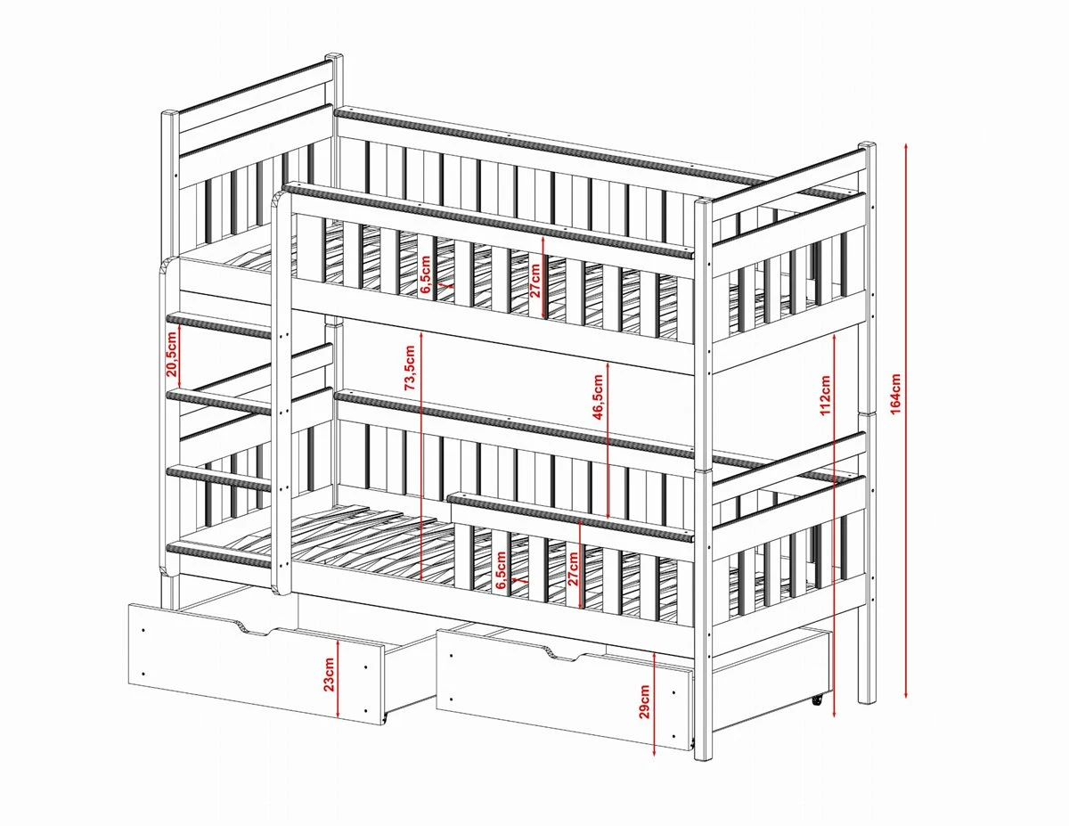 ¡Déjese ser encantado por Tezo! Una oferta única de una litera para su hijoLa litera de Furnlux es una sugerencia para aquellos que buscan un mueble que se adapte a casi todas las instalaciones. Gracias a su diseño simple, encaja en cada habitación y le da una apariencia sutil y encantadora. La litera de Tezo no se trata solo de hermosas formas. Sobre todo, es seguridad y comodidad para su hijo.Si tiene una familia numerosa y desea configurar una habitación para niños correctamente, entonces buscará soluciones compactas pero totalmente funcionales. La litera de Tezo se adapta perfectamente a estas necesidades. Es un mueble que sirve para relajarse y al mismo tiempo ofrece mucho espacio de almacenamiento mientras ocupa poco espacio.