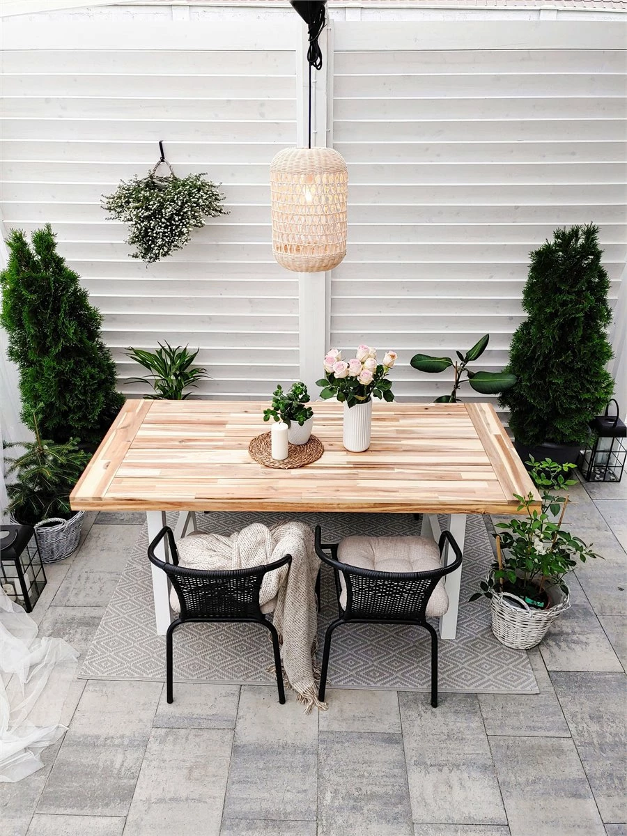 Mesa de diseño moderno. Esta práctica mesa se distingue por los materiales de alta calidad y acabado sólido. Está elaborada de madera de acacia y es muy fácil de limpiar. Gracias a los materiales de alta calidad, será perfecta tanto para un comedor, como en la terraza o patio. Detalles: Tipo de Producto: Mesa de comedor Estilo: Escandinavo Color: Madera clara Tipo de material: Madera maciza Material principal: Madera de acacia Material de las patas: Metal Material de la superficie: Madera maciza Forma: Rectangular Acabado: Aceitado Dimensiones: Ancho: 80 cm Longitud: 170 cm Altura: 74 cm Peso: 30 kg Capacidad de peso: 102 kg La oferta incluye: 1 x Mesa Ventajas: Diseño tradicional con un toque moderno, Ideal para uso en interiores y exteriores, Materiales de calidad, Resistencia UV, Construcción muy estable Información de montaje: Requiere montaje parcial. 20-40 min. Información adicional: Por favor, ten en cuenta que la madera es un producto natural, y cada pieza puede presentar ligeras variaciones. Las diferencias en el color o la textura, como las arrugas u otras características naturales, no se consideran un defecto ni tampoco una base de reclamación, El producto viene con un libro de cuidados detallado para ayudarte a mantener tus muebles en las mejores condiciones durante muchos años. Consulta estos consejos para garantizar el mantenimiento adecuado de tus muebles nuevos – encontrarás las instrucciones de mantenimiento junto con el manual de montaje. Texto de resistencia: Gracias a su resistencia al agua, puedes utilizar el producto al aire libre y dejarlo a la intemperie durante lluvias ligeras. Si no es posible guardarlo en un lugar cerrado y protegido, recomendamos utilizar una funda protectora. La exposición prolongada a la humedad puede provocar daños en el mueble. Resistencia: Agua ligera / humedad Consejos de mantenimiento: Madera de acacia: 1.Durante el invierno o en condiciones climáticas adversas, utilice una funda protectora o guarde los muebles en el interior 2.Los muebles con acabado de aceite deben volverse a engrasar antes de ponerlos en uso y al menos una vez al año, especialmente en el clima húmedo 3.Limpiar con un limpiador suave y un paño suave en la dirección de la veta. Secar con un paño inmediatamente después de limpiar.
