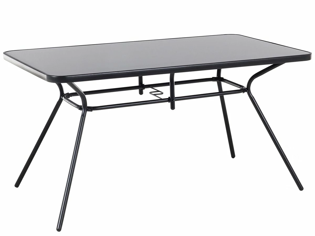 Moderna mesa de jardín rectangular en acero. Esta práctica mesa de exterior de forma rectangular, resaltará en tu jardín o balcón. Elaborada de materiales de la más alta calidad, la pieza cuenta con una sólida estructura en metal y con un tablero en vidrio templado. El mueble será la elección ideal para todo tipo de exterior. Gracias al revestimiento en polvo antioxidante, la mesa resiste a la intemperie, garantizándole una larga vida útil. Detalles: Tipo de Producto: Mesa de jardín Estilo: Moderno Color: Negro Tipo de material: Acero Material principal: Acero Material adicional: Vidrio templado Material de las patas: Acero Material de la superficie: Vidrio Forma: Rectangular Acabado: Brillante Dimensiones: Ancho: 80 cm Longitud: 140 cm Altura: 73 cm Peso: 23 kg Capacidad de peso: 75 kg La oferta incluye: 1 x Mesa Ventajas: Perfecto para todo tipo de exterior, Apariencia elegante, Gran durabilidad, Alta calidad, Fabricación sólida y precisa Información de montaje: Requiere montaje completo. 20-40 min. Texto de resistencia: Gracias a su resistencia al agua, puedes utilizar el producto al aire libre y dejarlo a la intemperie durante lluvias ligeras. Si no es posible guardarlo en un lugar cerrado y protegido, recomendamos utilizar una funda protectora. La exposición prolongada a la humedad puede provocar daños en el mueble. Resistencia: Agua ligera / humedad Consejos de mantenimiento: Acero: 1.Para garantizar la protección contra la corrosión, evite los limpiadores alcalinos o ácidos. Después de limpiar, secar bien 2.Quite las tapas protectoras con regularidad para que salga todo el líquido, déjelas secar y utilice un spray anticorrosión si es necesario 3.Limpiar con detergentes suaves 4.Los muebles de acero y sus elementos no deben exponerse al agua. De lo contrario, existe la posibilidad de que el agua oxidada salga de las tuberías del marco 5.Cuando no estén en uso, los muebles deben guardarse en el interior o bajo una cubierta protectora 6.Para aumentar la durabilidad del artículo, manténgalo seco y recuerde la limpieza regular 7.Cualquier daño a la capa de pintura exterior debe protegerse de la humedad. Vidrio templado: 1.Limpiar con un detergente suave o acondicionador de vidrio con un paño suave. Secar después de limpiar 2.Secar después de la lluvia o la nieve. Durante el invierno, utilice una funda protectora o guarde los muebles en el interior 3.Para evitar rayones, no use un limpiador cremoso.