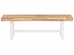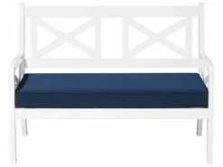 Banco De Jardín En Madera Blanca 120 Cm Con Cojín Azul Oscuro BALTIC