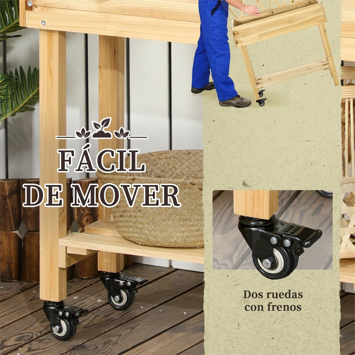 Si no tienes espacio para un huerto convencional o quieres un espacio compacto y funcional dónde plantar, estás de suerte. Este huerto urbano de Outsunny te va a encantar. Está hecho de madera de abeto, tiene 1 orificio de drenaje y el interior está forrado de malla geotextil transpirable. Lo mejor de todo es la altura, que además de darle un toque decorativo, facilita el cuidado de tus plantes. Características – Diseño elevado, para que no tengas que agacharte demasiado y evitar tener que forzar el cuerpo – Ofrece mucho espacio para colocar tus plantas y ayudarlas a crecer de forma eficiente – Estructura de madera maciza de abeto con pintura resistente al agua para mayor durabilidad – Con enrejado trasero para poder cultivar plantas trepadoras – El revestimiento no tejido evita que la arena y suciedad caiga a la vez que permite que el agua drene – Con estante inferior para proporcionar un extra de almacenamiento – Ruedas con frenos para mover con facilidad y también poder fijar en una posición estable – Perfecto para aquellos que les gusta la jardinería y que no tienen demasiado espacio – Adecuado para colocar en el jardín, patio, balcón o terraza – Se requiere montaje Especificaciones – Color: natural – Material: madera de abeto – Medidas totales: 79x29x130 cm (LxANxAL – Interior de la cama de cultivo: 73x25x14 cm. Altura desde el suelo: 58 cm – Medidas de la celosía: 79×62 cm (LxAN – Medidas del estante: 66×25 cm. Altura desde el suelo: 18 cm – Medidas de las ruedas: Ø5 cm – Carga máxima: 25 kg (área de plantación, 15 kg (estante – Referencia: 845-899V00ND