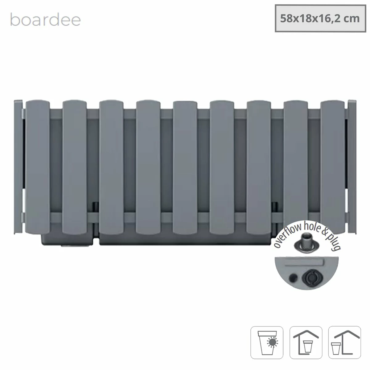 Jardinera para balcón de la colección BOARDEE FENCYCASEDimensiones: 580x180x162Gris piedra