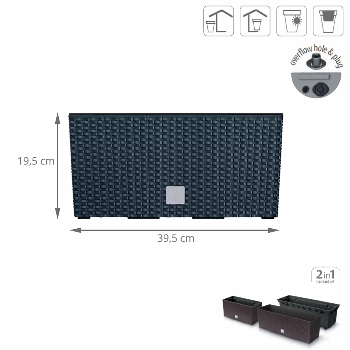 Jardinera Para Balcón De La Colección Rato Case_x000D_Dimensiones: 395X185X195_x000D_Antracita