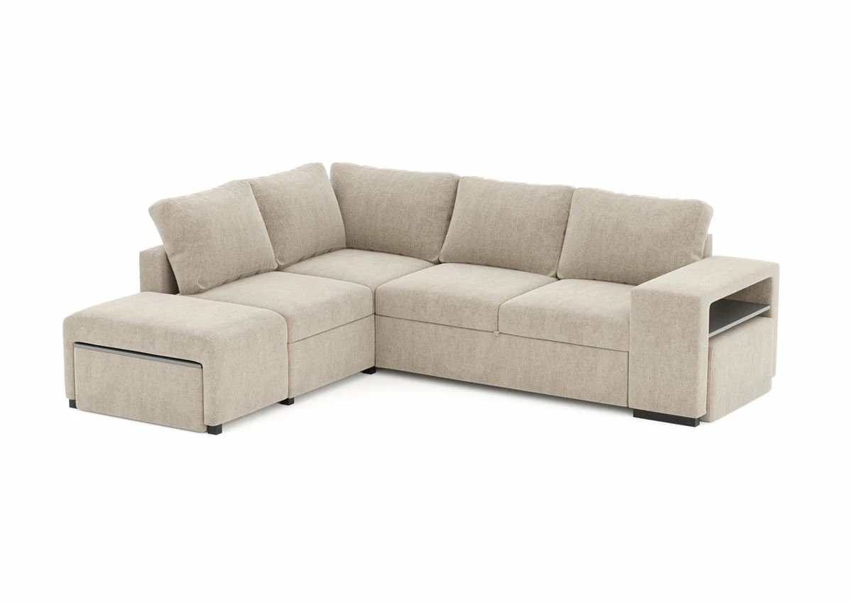 •Chaise Longue reversible convertible en cama con arcón, pouf, revistero •Revestimiento 100 % Polyester. •Estructura de madera de Pino y madera contrachapada.•Tipo de suspensión: Muelle Zig-Zag.•Densidad de espuma en asientos: 25kg/m3.