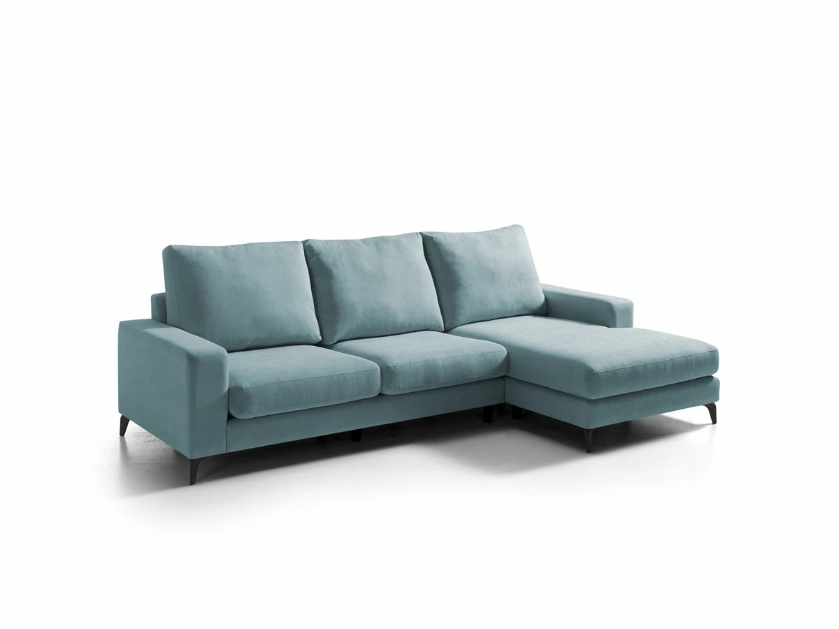 RUBI Chaise Longue Fija Derecha. Estructura en madera maciza y tablero de partículas. Revestimiento en tela, color verde. Densidad de espuma en asientos de 28 kg/m3. Patas en PVC, color wengue. Almohadas desenfundables. Medidas : 280an x 98al x 100fon cm.