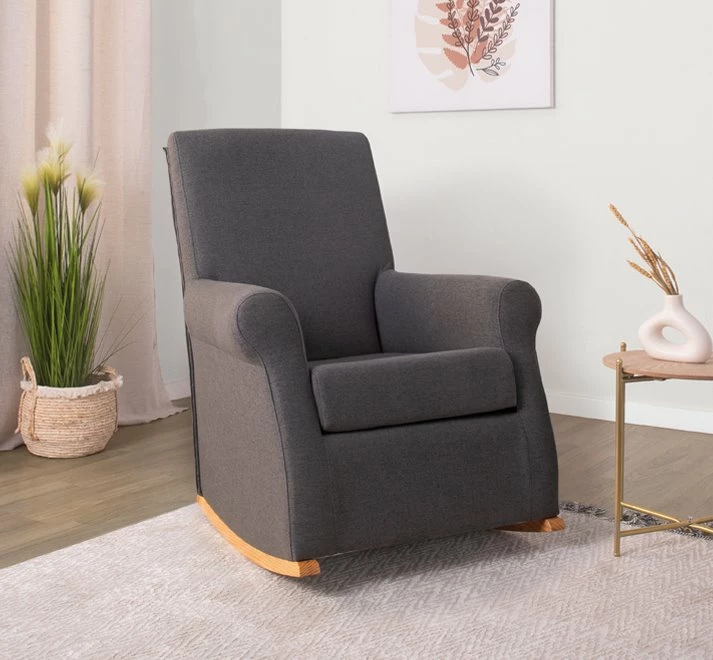 MARINA SILLÓN BALANCÍN GRIS. Estructura de madera de pino macizo. Goma espuma de densidad 28/kg m3. Medidas: 81 an x 101 al x 85fon cm.