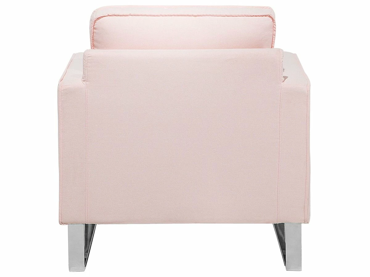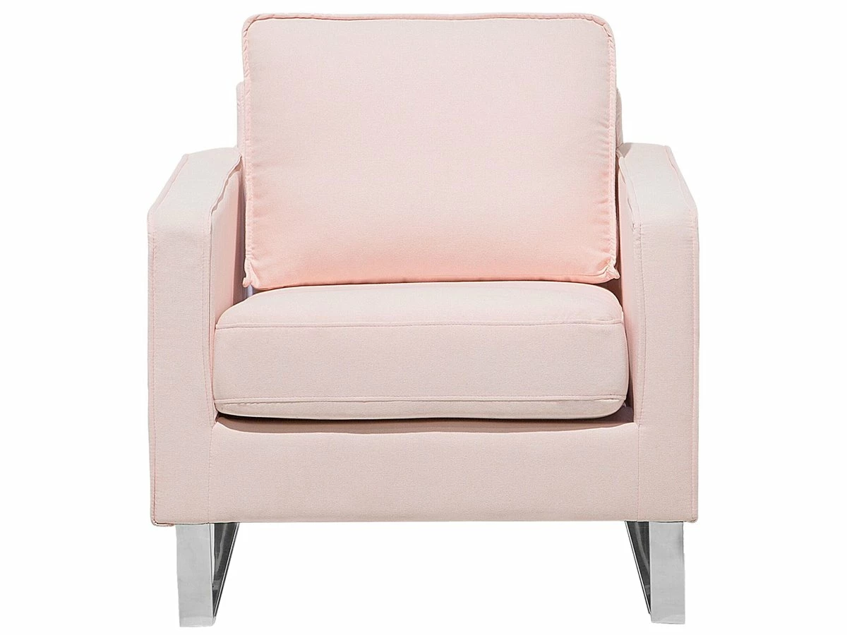 Sillón de descanso. Añade a tu sala de estar, dormitorio u oficina en casa este sillón decorativo. Está fabricado a partir de tela de poliéster de alta calidad y suave al tacto. El asiento ancho y los cojines de acolchado grueso ofrecen la máxima comodidad. La base de metal combina bien en cualquier interior de estilo minimalista o ecléctico. Detalles: Tipo de Producto: Sillón Estilo: Glamour Color: Rosa Tipo de material: Tejido Material principal: Poliéster Material adicional: Acero inoxidable Material del relleno: Espuma Material de las patas: Acero Material del asiento: Tejido Composición del Material: 100% Poliéster Estilo del apoyabrazo: Estrecho Apoyabrazo: Sí Protectores para patas: No Diseño: Sólido Reclinable: No Construcción del asiento: Muelles ondulados Densidad de espuma del asiento: 24 kg/m3 Dimensiones: Altura del apoyabrazos: 62 cm Profundidad: 82 cm Espesor del asiento: 11 cm Altura del asiento: 44 cm Ancho: 76 cm Altura: 82 cm Superficie del asiento: 60×48 cm Peso: 23 kg Capacidad de peso: 200 kg La oferta incluye: 1 x Sillón Ventajas: Confort del asiento óptimo, Diseño tradicional con un toque moderno, Combina con cualquier estilo de interior, Acolchado de alta calidad, Fundas extraíbles Información de montaje: Requiere montaje completo. 20-40 min. Información adicional: Para una mayor estabilidad y seguridad de uso, se recomienda verificar 2 semanas después de la instalación que el montaje del producto ha sido realizado de forma correcta. Revisa, al menos una vez cada 3 meses, que los tornillos estén bien apretados. Consejos de mantenimiento: Poliéster: 1.Aspire con un accesorio adecuado 2.Limpiar con champú seco y una esponja húmeda o un limpiador suave. Acero inoxidable: 1.Para elementos de cobre o cromados, use agente abrillantador 2.Para evitar arañazos, no use limpiadores abrasivos 3.Limpie con un limpiador y un paño suave, seque después.