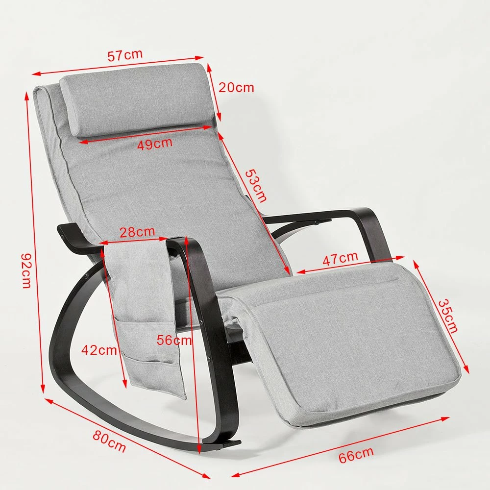 Tacto agradable – Cubierta de la mecedora está hecha de algodón 100%, con tacto agradable y transpirableMedidas de la estructura (L, A, P: 66 cm x 92cm x 80 cm; Asiento: ca. 47 cm x57 cmCapacidad de carga: 150 kg, Peso:11 kgIncluye un cojín donde se reposa la cabeza,La zona de reposo de las piernas se puede ajustar en 5 nivelesMayor comodidad gracias a una capa gruesa de relleno adicional.