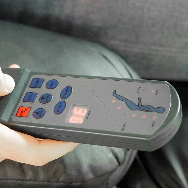 •Sillón de Relax con termoterapia y sistema de elevación y reclinación automática.•Dispone de mando de control con diferentes tipos de masaje y diez intensidades. Así como mando de elevación.•Tapizado en piel sintética de alta densidad (Full PU con tratamiento anti-cuarteo.•Masajea todo el contorno corporal: Lumbares, espalda, hombros, cuello, glúteos y piernas.•Dispone de un Bolsillo Lateral Porta-Objetos.•Estructura Reforzada Con Ruedas, para fácil desplazamiento.•El Respaldo y Reposapiés, funcionan simultáneamente.•Máximo Grado de Inclinación que ayuda a incorporarse casi verticalmente.•Máximo Grado de Recostamiento.•Acolchado Extra en zona Cervical y Apoyabrazos.•Pesó máximo autorizado: 130kg.•Colores disponibles: Negro, topo, beige/crema y chocolate. •La entrega se hace a pie de calle, no se introduce el producto en el edificio. No dispone de servicio de montaje.Accesorios:•1 mando Masaje•1 mando Elevador•1 transformador•1 manual de Instrucciones
