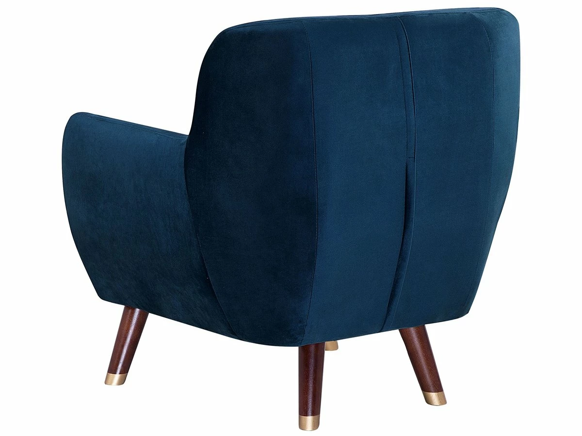 Sillón de terciopelo. Añade comodidad a tu sala de estar con este sillón. Está fabricado a partir de tela de terciopelo de alta calidad y resistente al desgaste. El respaldo abotonado, los reposabrazos en ángulo y las patas de madera inclinadas aportan un toque retro al diseño. El cojín de asiento acolchado con espuma proporciona el máximo confort. Viene con una funda extraíble. Detalles: Tipo de Producto: Sillón Estilo: Retro Color: Azul Tonalidad: Azul marino Tipo de material: Poliéster aterciopelado Material principal: Terciopelo Material adicional: Acero Material del relleno: Espuma Material de las patas: Madera maciza Material del asiento: Tejido Composición del Material: 100% Poliéster Estilo del apoyabrazo: Integrado Apoyabrazo: Sí Protectores para patas: Sí Diseño: Sólido Reclinable: No Construcción del asiento: Muelles ondulados Densidad de espuma del asiento: 50 kg/m3 Dimensiones: Altura del apoyabrazos: 61 cm Profundidad: 81 cm Espesor del asiento: 16 cm Altura del asiento: 45 cm Ancho: 80 cm Altura: 84 cm Superficie del asiento: 52×48 cm Peso: 22 kg Capacidad de peso: 100 kg La oferta incluye: 1 x Sillón Ventajas: El grueso acolchado del asiento brinda comodidad, Estilo retro, Tejido aterciopelado suave como la seda, Completamente tapizado, Patas con tapas anti-deslizantes Información de montaje: Requiere montaje de las patas. 5-15 min. Información adicional: A efectos de transporte, las patas están ocultas en un bolsillo en la parte inferior del asiento. Para una mayor estabilidad y seguridad de uso, se recomienda verificar 2 semanas después de la instalación que el montaje del producto ha sido realizado de forma correcta. Revisa, al menos una vez cada 3 meses, que los tornillos estén bien apretados. Ten en cuenta que la tela de terciopelo puede presentar un aspecto distinto según la iluminación a la que esté expuesta: tiende a brillar más a la luz del día y a parecer más tenue con luz artificial en interiores. Debido a la estructura suave de alta densidad, la tonalidad puede verse modificada haciendo pasar la mano en distintas direcciones y ángulos. Para igualar el color y eliminar las arrugas, el material debe limpiarse con la palma de mano abierta en una dirección, con un paño húmedo o una plancha con vapor. Consejos de mantenimiento: Terciopelo: 1.Aspire con un accesorio adecuado 2.Limpiar con champú seco y una esponja húmeda o un limpiador suave. Madera de caucho: 1.Limpie con un limpiador y un paño suave en la dirección del grano 2.Los muebles con acabado de aceite deben engrasarse una vez al año, 3.Seque inmediatamente después de limpiar. para evitar que se acumule agua en los muebles.