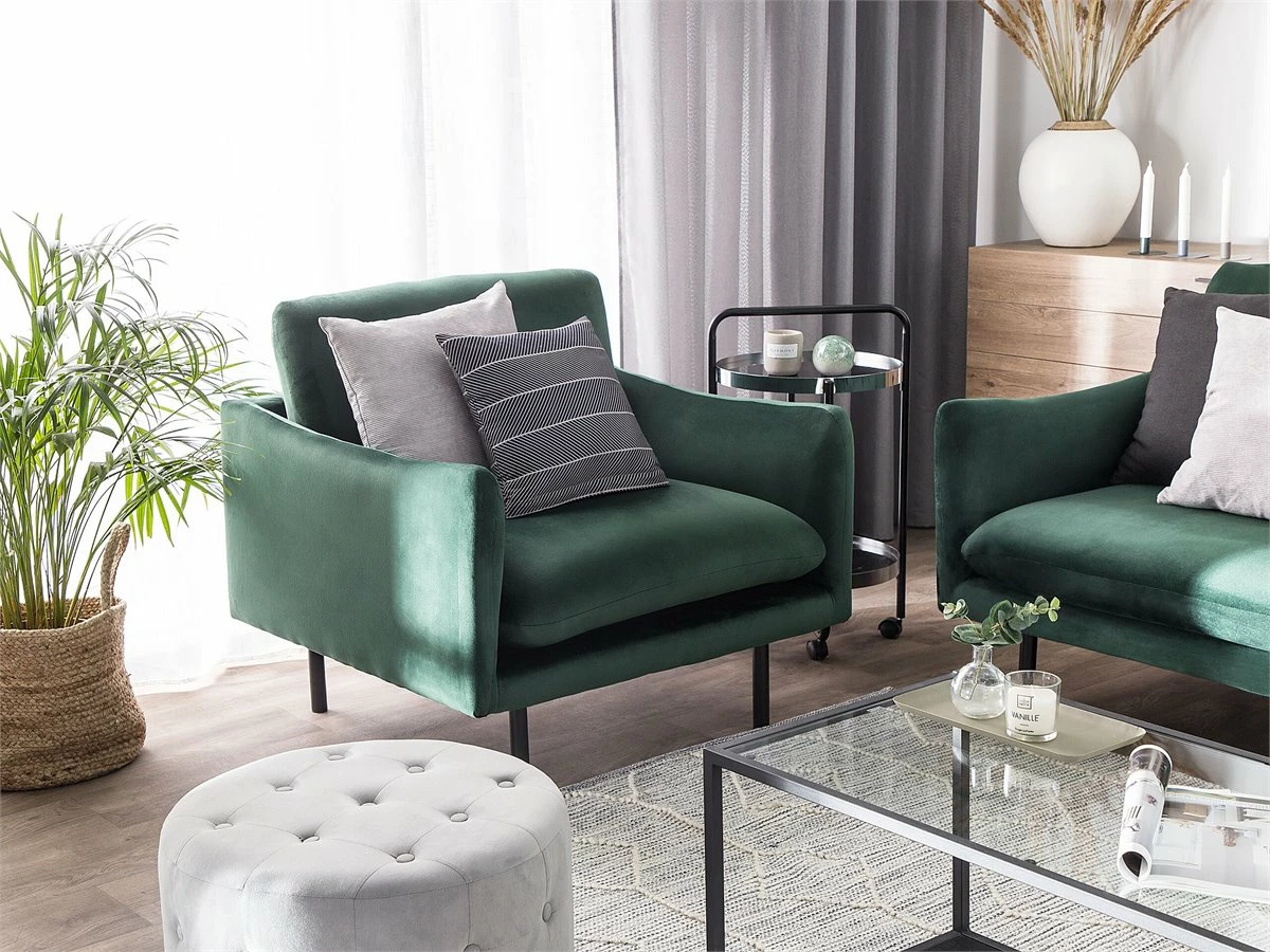 Sillón de terciopelo. Añade comodidad a tu sala de estar con este sillón. Está fabricado a partir de tela de terciopelo brillante y suave al tacto. La construcción de madera resistente proporciona estabilidad. Los cojines de asiento y el respaldo acolchado garantizan la máxima comodidad. Combina bien en cualquier interior moderno, tradicional o industrial. Detalles: Tipo de Producto: Sillón Estilo: Retro Color: Azul Tonalidad: Azul oscuro Tipo de material: Poliéster aterciopelado Material principal: Terciopelo Material adicional: Material sintético Material del relleno: Espuma Material de las patas: Material sintético Material del asiento: Poliéster aterciopelado Composición del Material: 100% Poliéster Estilo del apoyabrazo: Estrecho Apoyabrazo: Sí Protectores para patas: Sí Diseño: Sólido Reclinable: No Construcción del asiento: Muelles ondulados Densidad de espuma del asiento: 50 kg/m3 Dimensiones: Altura del apoyabrazos: 65 cm Profundidad: 85 cm Espesor del asiento: 18 cm Altura del asiento: 46 cm Ancho: 92 cm Altura: 85 cm Superficie del asiento: 60×60 cm Peso: 33 kg Capacidad de peso: 150 kg La oferta incluye: 1 x Sillón Ventajas: El grueso acolchado del asiento brinda comodidad, Brinda un toque moderno a cualquier interior, Tejido aterciopelado suave como la seda, Estructura duradera y sólida, Patas con tapas antideslizantes de seguridad Información de montaje: Requiere montaje de las patas. 5-15 min. Información adicional: Para una mayor estabilidad y seguridad de uso, se recomienda verificar 2 semanas después de la instalación que el montaje del producto ha sido realizado de forma correcta. Revisa, al menos una vez cada 3 meses, que los tornillos estén bien apretados. Ten en cuenta que la tela de terciopelo puede presentar un aspecto distinto según la iluminación a la que esté expuesta: tiende a brillar más a la luz del día y a parecer más tenue con luz artificial en interiores. Debido a la estructura suave de alta densidad, la tonalidad puede verse modificada haciendo pasar la mano en distintas direcciones y ángulos. Para igualar el color y eliminar las arrugas, el material debe limpiarse con la palma de mano abierta en una dirección, con un paño húmedo o una plancha con vapor. Consejos de mantenimiento: Terciopelo: 1.Aspire con un accesorio adecuado 2.Limpiar con champú seco y una esponja húmeda o un limpiador suave. Material sintético: 1.Limpie con un limpiador y un paño suave, seque después.
