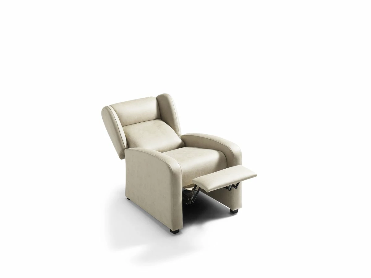 ADA Sillón Relax Manual. Estructura de madera y tablero de partículas. Revestimiento en tela, color beige. Patas en PVC, color wengué. Medidas: 72an x 98al x 88 fon cm.