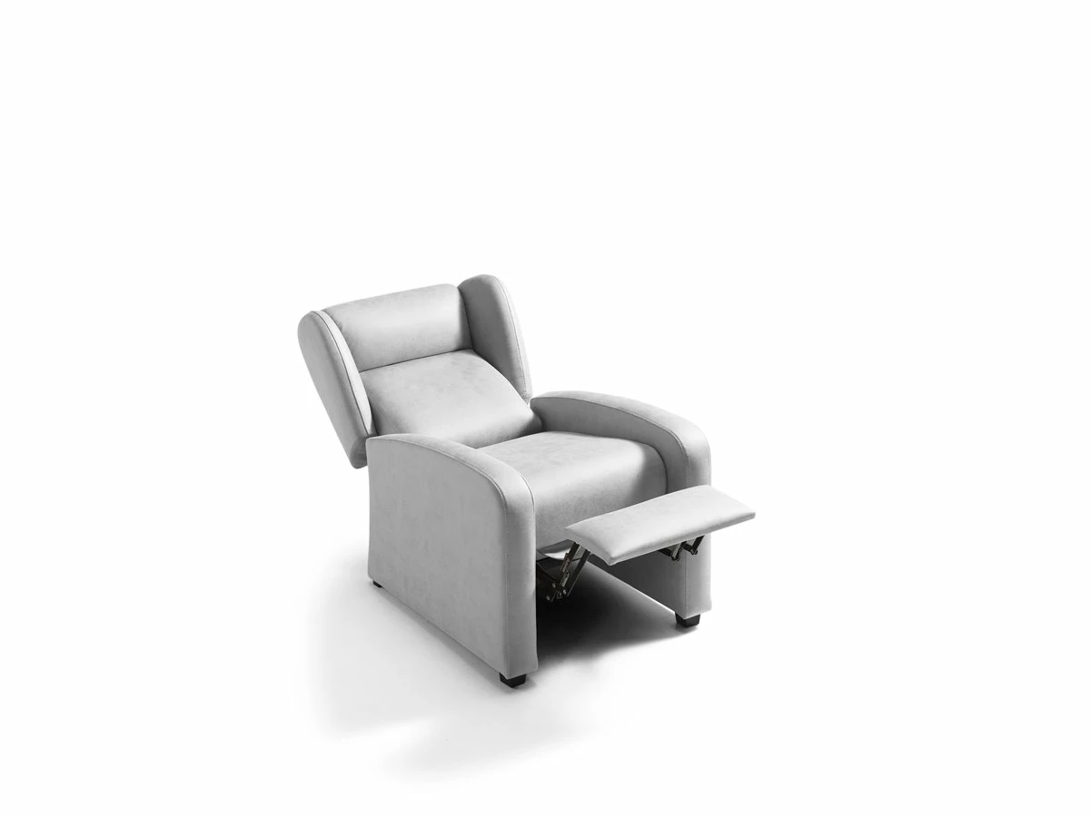 ADA Sillón Relax Manual. Estructura de madera y tablero de partículas. Revestimiento en tela, color gris claro. Patas en PVC, color wengué. Medidas: 72an x 98al x 88 fon cm.