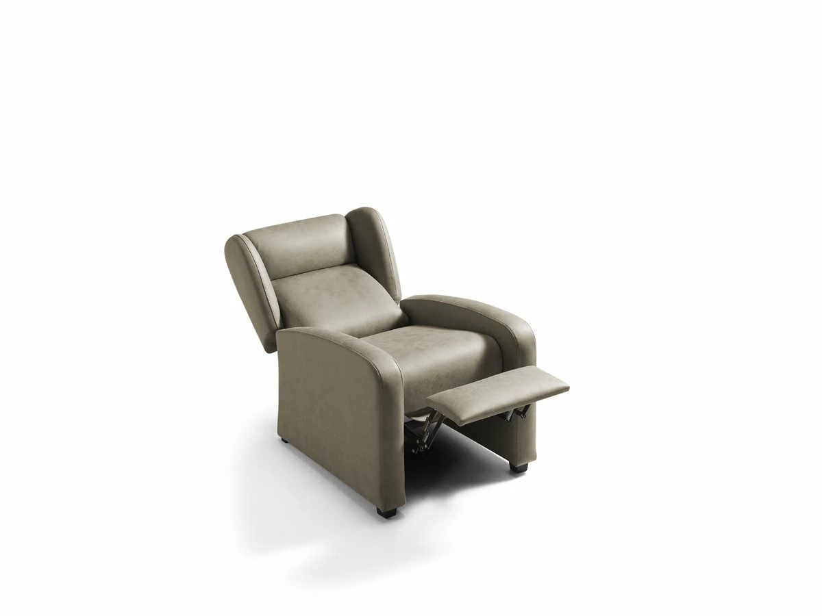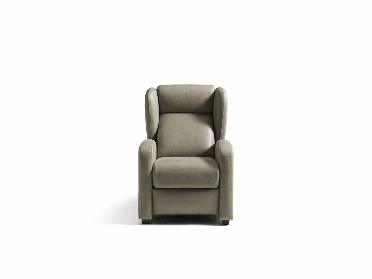 ADA Sillón Relax Manual. Estructura de madera y tablero de partículas. Revestimiento en tela, color marrón. Patas en PVC, color wengué. Medidas: 72an x 98al x 88 fon cm.