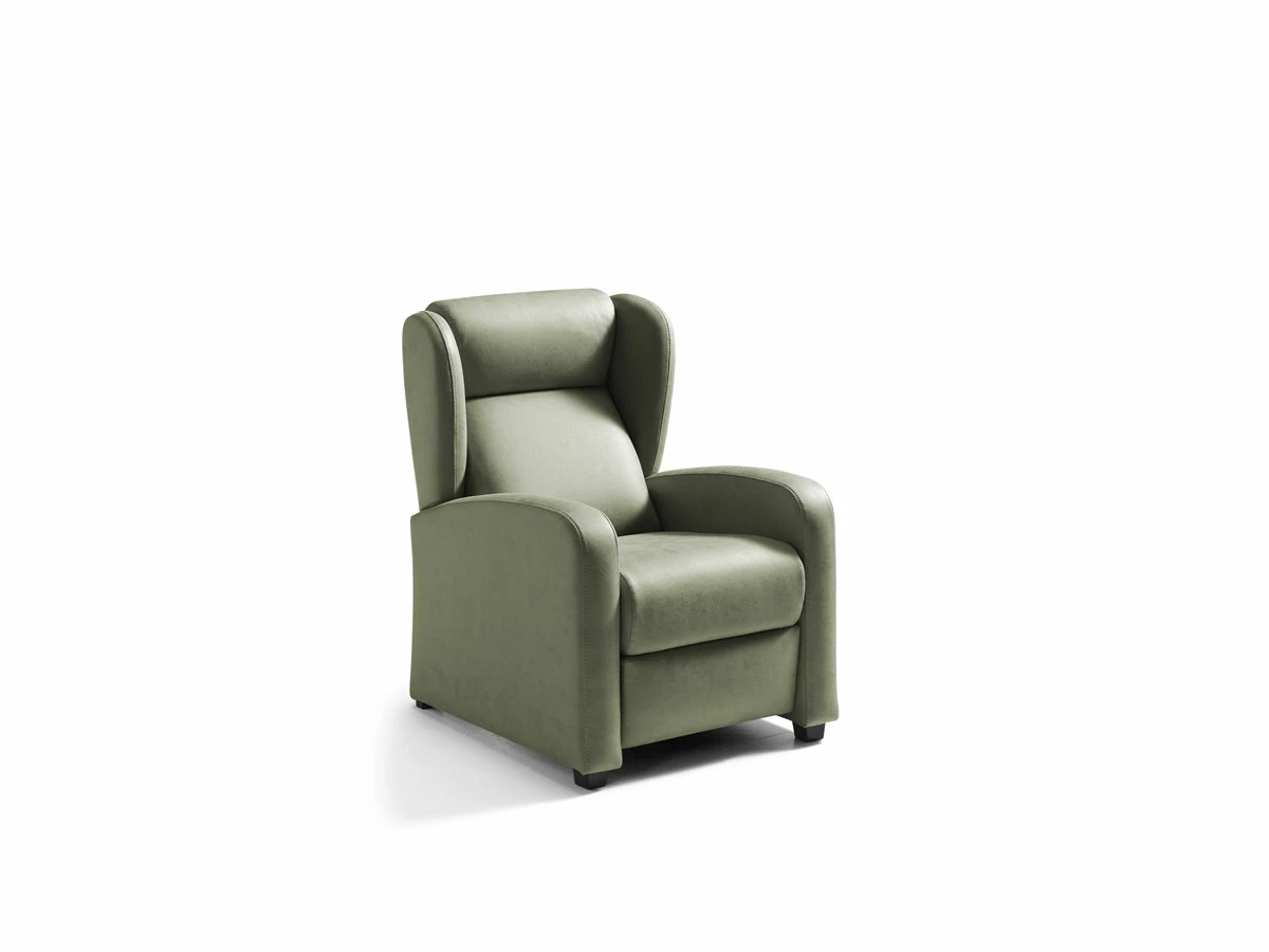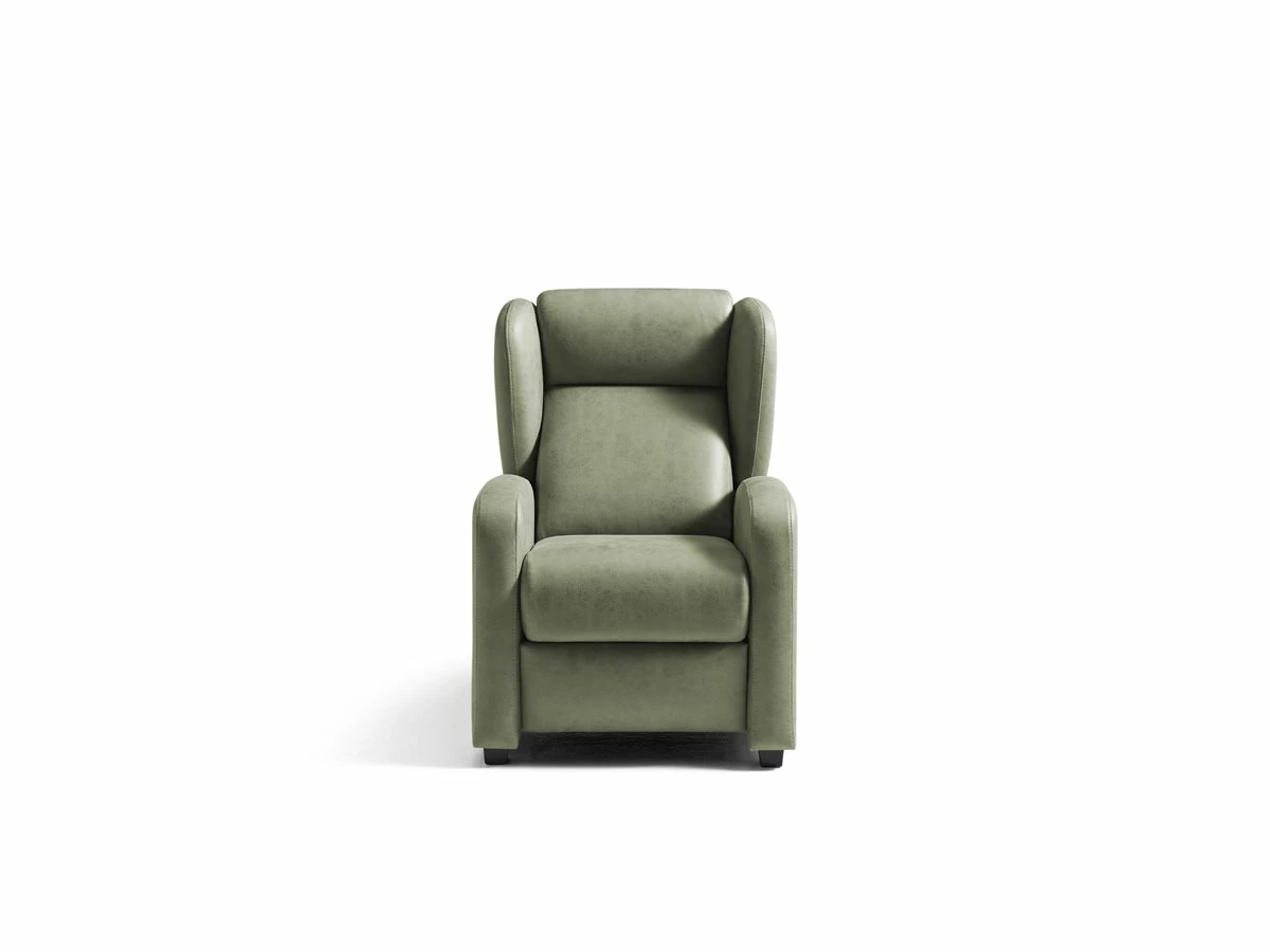 ADA Sillón Relax Manual. Estructura de madera y tablero de partículas. Revestimiento en tela, color verde. Patas en PVC, color wengué. Medidas: 72an x 98al x 88 fon cm.