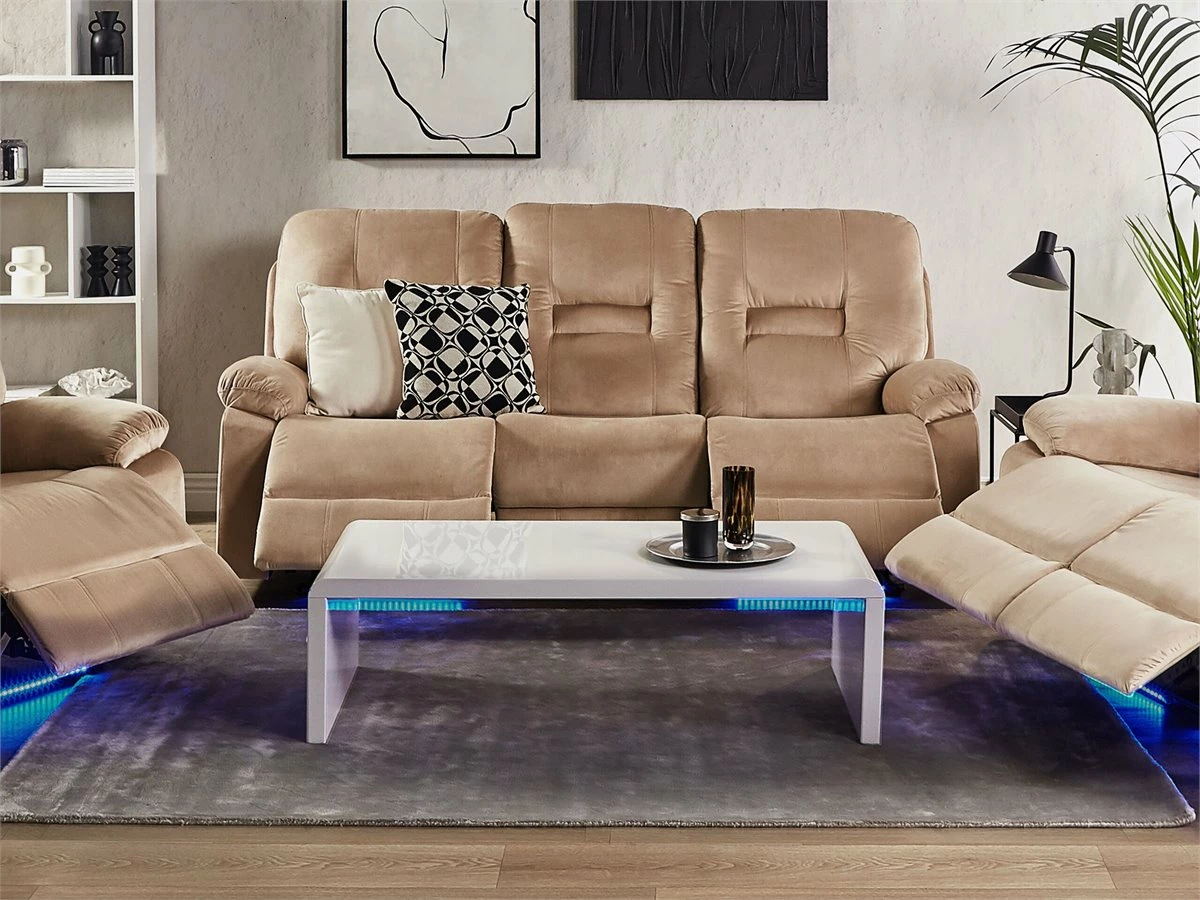 Sofá con reclinación eléctrica. Añade a tu sala de estar este sofá de 3 plazas de diseño moderno y funcional. Está fabricado a partir de tela de terciopelo de alta calidad y suave al tacto. Los reposabrazos amplios y el respaldo alto ofrecen el máximo confort. El reposapiés transforma el sillón en un lugar cómodo para acostarse. La luz LED incorporada proporciona un ambiente agradable durante tus noches de cine. Puedes utilizar el puerto USB para cargar el móvil. Detalles: Tipo de Producto: Sofá reclinable Estilo: Moderno Color: Gris Tonalidad: Gris oscuro Tipo de material: Poliéster aterciopelado Material principal: Terciopelo Material adicional: Madera contrachapada Material del relleno: Espuma Composición del Material: 100% Poliéster Forma: Rectangular Partes ajustables: Respaldo Tipo de ajuste: Eléctrico Estilo del apoyabrazo: Con cojín Apoyabrazo: Sí Parte posterior tapizada: Sí Consumo de potencia: 0.21 W Diseño: Sólido Potencia de salida: +29V 2A Construcción del asiento: Muelles de bolsillo Densidad de espuma del asiento: 28 kg/m3 Asientos para: 3 personas Puerto USB: 10 Dimensiones: Altura del apoyabrazos: 61 cm Profundidad: 73 cm Espesor del asiento: 24 cm Altura del asiento: 49 cm Ancho: 204 cm Altura: 101 cm Superficie del asiento: 169×53 cm Peso: 81 kg Capacidad de peso por persona: 90 kg La oferta incluye: 1 x Sofá de 3 plazas Ventajas: Reposapiés y brazos ajustables, Asiento bajo y profundo, Brinda sensaciones de relax, Llamativa iluminación LED que crea un ambiente agradable, Alta calidad, Totalmente reclinable a la posición horizontal, Completamente tapizado Información de montaje: Requiere montaje completo. 20-40 min. Información adicional: Para un uso seguro, debe haber un espacio de ~15 cm entre el respaldo y la pared. Para una mayor estabilidad y seguridad de uso, se recomienda verificar 2 semanas después de la instalación que el montaje del producto ha sido realizado de forma correcta. Revisa, al menos una vez cada 3 meses, que los tornillos estén bien apretados. Consejos de mantenimiento: Terciopelo: 1.Aspire con un accesorio adecuado 2.Limpiar con champú seco y una esponja húmeda o un limpiador suave. Acero: 1.Para elementos de cobre o cromados, use agente abrillantador 2.Para evitar arañazos, no use limpiadores abrasivos 3.Limpie con un limpiador y un paño suave, seque después.