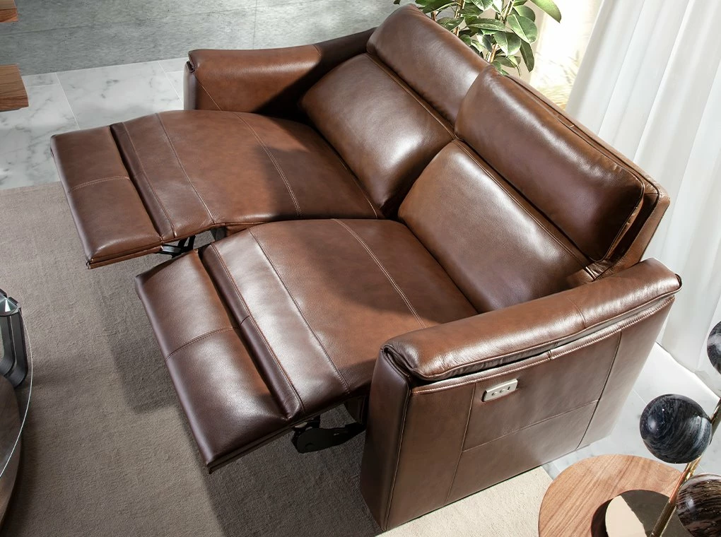 Sofá 3 plazas en piel vacuno con mecanismos relax modelo 6166 Angel Cerdá S.L. Sofá 3 plazas de diseño moderno tapizado en piel vacuno de 1,25 mm de espesor color marrón Cognac. Sus asientos reclinables en respaldo y reposapiés le aportan ese extra de comodidad que necesita para disfrutar de su momento de tranquilidad. Un sofá de estilo minimalista y único, con una robusta estructura interna de madera de pino natural y asientos con mecanismos eléctricos de relax. La combinación perfecta entre diseño, elegancia y confort. ESTILO: Este original sofá 3 plazas tapizado en piel de origen vacuno color marrón Cognac de las más alta calidad aportará el toque original y personal que busca para su hogar, fiel a las últimas tendencias en decoración. MULTIESTANCIA: Funcional y acogedor, su diseño con mecanismos relax, permitirá que encaje en cualquier tipo de salón, convirtiéndose en el gran protagonista de la sala. CALIDAD: Todos nuestros productos están fabricados con materiales de la más alta calidad, siendo garantái de mobiliario duradero y funcional. DECORACIÓN: Gracias a su diseño moderno y original, combinando las formas originales del reposabrazos y el tapizado color marrón Cognac, lo convierten en un sofá perfecto para aportar el equilibrio perfecto entre estilo y comodidad. DIMENSIONES Y CONFORT: El tamaño de sus asientos con mecanismo relax y su relleno de espuma de poliuretano de 25 kg/m3 de densidad, le proporcionarán el máximo confort, sin dejar de lado la más alta tendencia. CARACTERÍSTICAS: Este sofá cuenta con un conector USB, eliminando la necesidad de tener un enchufe cerca y asi poder cargar sus dispositivos. Además, puede terminar su estancia con el conjunto de 2 plazas.
