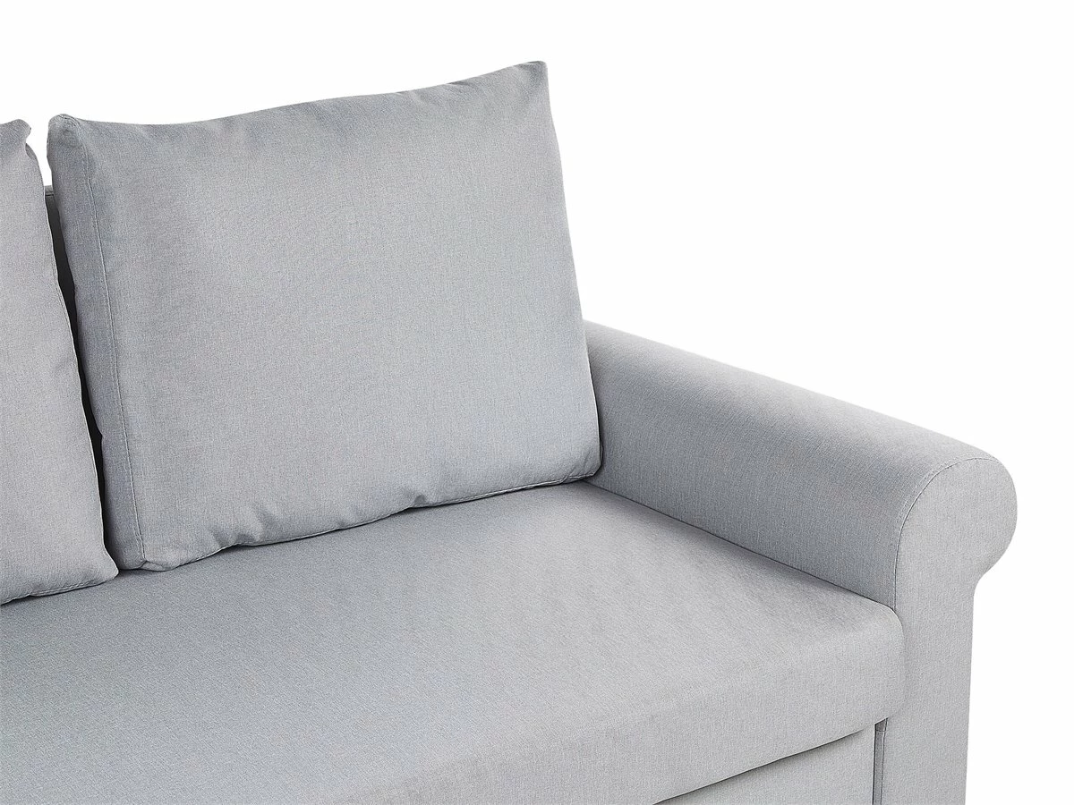 Sofá cama estilo retro. Añade funcionalidad a tu sala de estar con este sofá cama fabricado a partir de poliéster resistente y de alta calidad. La estructura de madera encaja bien en interiores modernos y tradicionales. El reposabrazos de estilo retro y las patas de plástico complementan el diseño final. Los cojines adicionales vienen con funda extraíble. Fácilmente convertible en cama. Detalles: Tipo de Producto: Sofá cama Estilo: Moderno Color: Gris Tonalidad: Gris claro Tipo de material: Tejido Material principal: Poliéster Material adicional: Material sintético Material del relleno: Espuma Composición del Material: 100% Poliéster Estilo del apoyabrazo: Redondeado Apoyabrazo: Sí Parte posterior tapizada: No Protectores para patas: No Reclinable: No Fundas de cojín extraíble: Sí Construcción del asiento: Bandas elásticas Densidad de espuma del asiento: 22 kg/m3 Asientos para: 2 personas Función para dormir: Sí Mecanismo de abertura del sofa cama: Tracción Almacenamiento: No Dimensiones: Altura del apoyabrazos: 63 cm Profundidad: 93 cm Espesor del asiento: 16 cm Altura del asiento: 47 cm Ancho: 173 cm Altura: 92 cm Superficie del asiento: 132×54 cm Superficie para dormir: 184×132 cm Peso: 50 kg Capacidad de peso por persona: 80 kg La oferta incluye: 1 x Sofá Ventajas: Convertible en cómoda cama, Diseño tradicional con un toque moderno, Estructura duradera y sólida, Acolchado de alta calidad, Cojines extraíbles para un fácil mantenimiento Información de montaje: Requiere montaje parcial. 5-15 min. Consejos de mantenimiento: Poliéster: 1.Aspire con un accesorio adecuado 2.Limpiar con champú seco y una esponja húmeda o un limpiador suave.