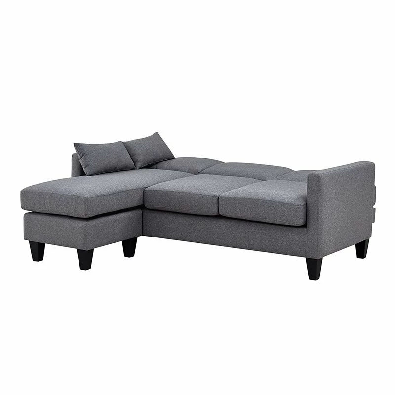 •Con un toque ligeramente clásico, encajará perfectamente en tu salón debido a que es reversible.•Medidas sofá (180×87/144×88 Medidas cama (180×114/166×46.•Podrás colocar la parte de la chaise longe a la izquierda o a la derecha.•Fabricado en tela de alta calidad, transpirable, anti-arrugas e hipoalergénico. Cuenta con una densidad de espuma de 24 kg.•Incluye dos cojines de 30x50cm del mismo color del sofá.•Sistema de apertura click-clack.•Facilidad y comodidad a la hora de reclinarlo y transformarlo en cama.•Tipos de muelles: SS•Disponible en dos colores: arena y gris.•Parcialmente desmontado, requiere de montaje. •La entrega se hace a pie de calle, no se introduce el producto en el edificio. No dispone de servicio de montaje.