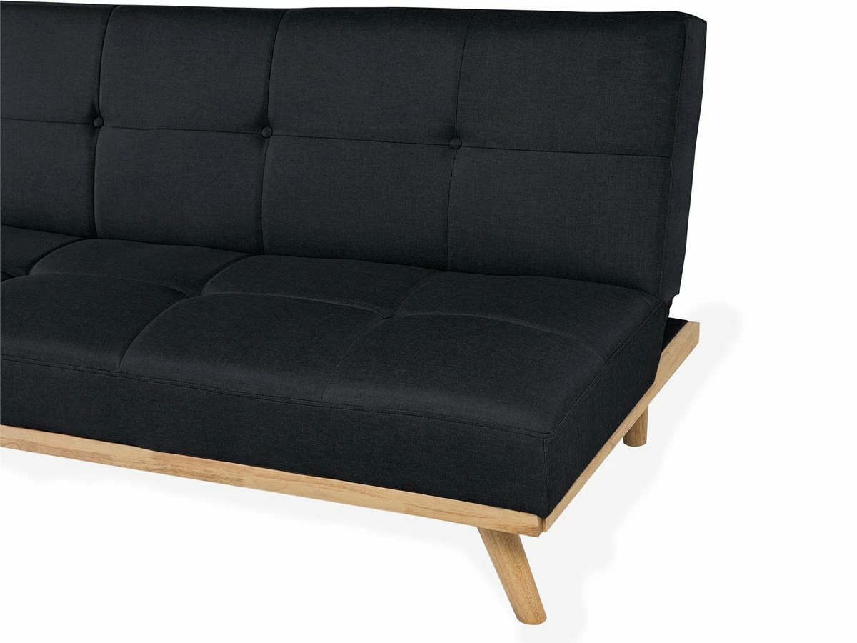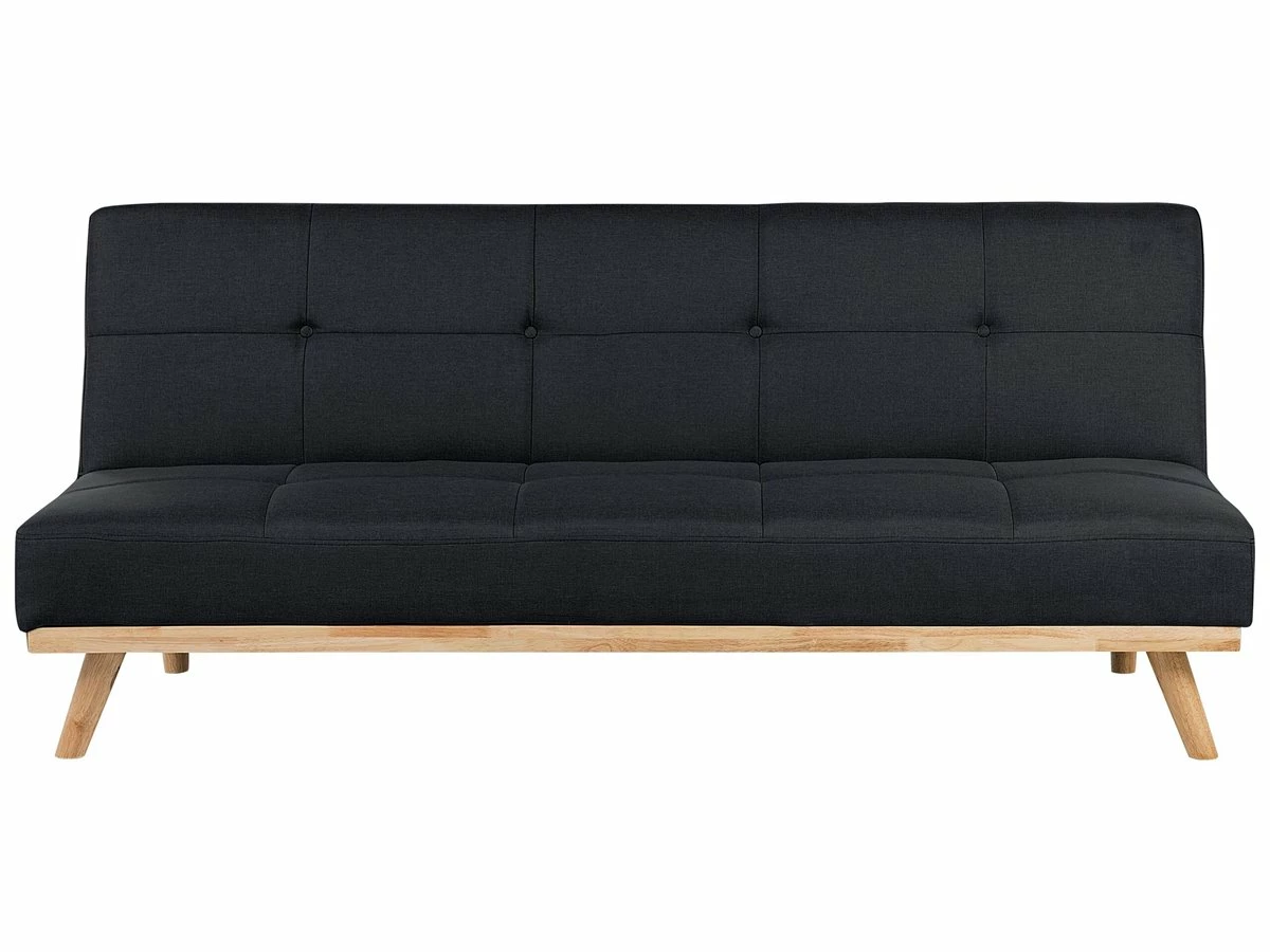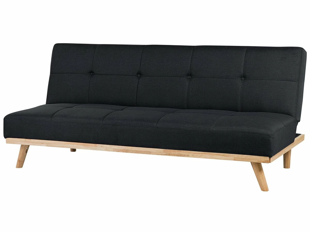 Elegante sofá 3 plazas. Este sofá cama de 3 plazas combina bien en cualquier sala de estar o dormitorio de dimensiones reducidas. El diseño con botones simples y el esquema de color neutro aportan un toque minimalista. Las patas de madera de caucho encajan bien con el diseño general de la pieza. Fácilmente convertible en cama gracias al mecanismo clic-clac incorporado. Detalles: Tipo de Producto: Sofá cama Estilo: Moderno Color: Negro Tipo de material: Tejido Material principal: Poliéster Material adicional: Madera de caucho Material del relleno: Madera de caucho Composición del Material: 100% Poliéster Estilo del apoyabrazo: Sin reposabrazos Apoyabrazo: No Parte posterior tapizada: No Protectores para patas: Sí Reclinable: No Fundas de cojín extraíble: No Construcción del asiento: Muelles ondulados Asientos para: 3 personas Función para dormir: Sí Mecanismo de abertura del sofa cama: Mecanismo click-clack Almacenamiento: No Dimensiones: Profundidad: 80 cm Altura del asiento: 38 cm Ancho: 183 cm Altura: 80 cm Superficie del asiento: 183×80 cm Superficie para dormir: 183×100 cm Peso: 36 kg Capacidad de peso por persona: 150 kg La oferta incluye: 1 x Sofá Ventajas: Convertible en cómoda cama, Confort del asiento óptimo, Estilo retro, Acolchado con botones decorativos, Completamente tapizado Información de montaje: Requiere montaje de las patas. 5-15 min. Información adicional: A efectos de transporte, las patas están ocultas en un bolsillo en la parte inferior del asiento. Consejos de mantenimiento: Poliéster: 1.Aspire con un accesorio adecuado 2.Limpiar con champú seco y una esponja húmeda o un limpiador suave.