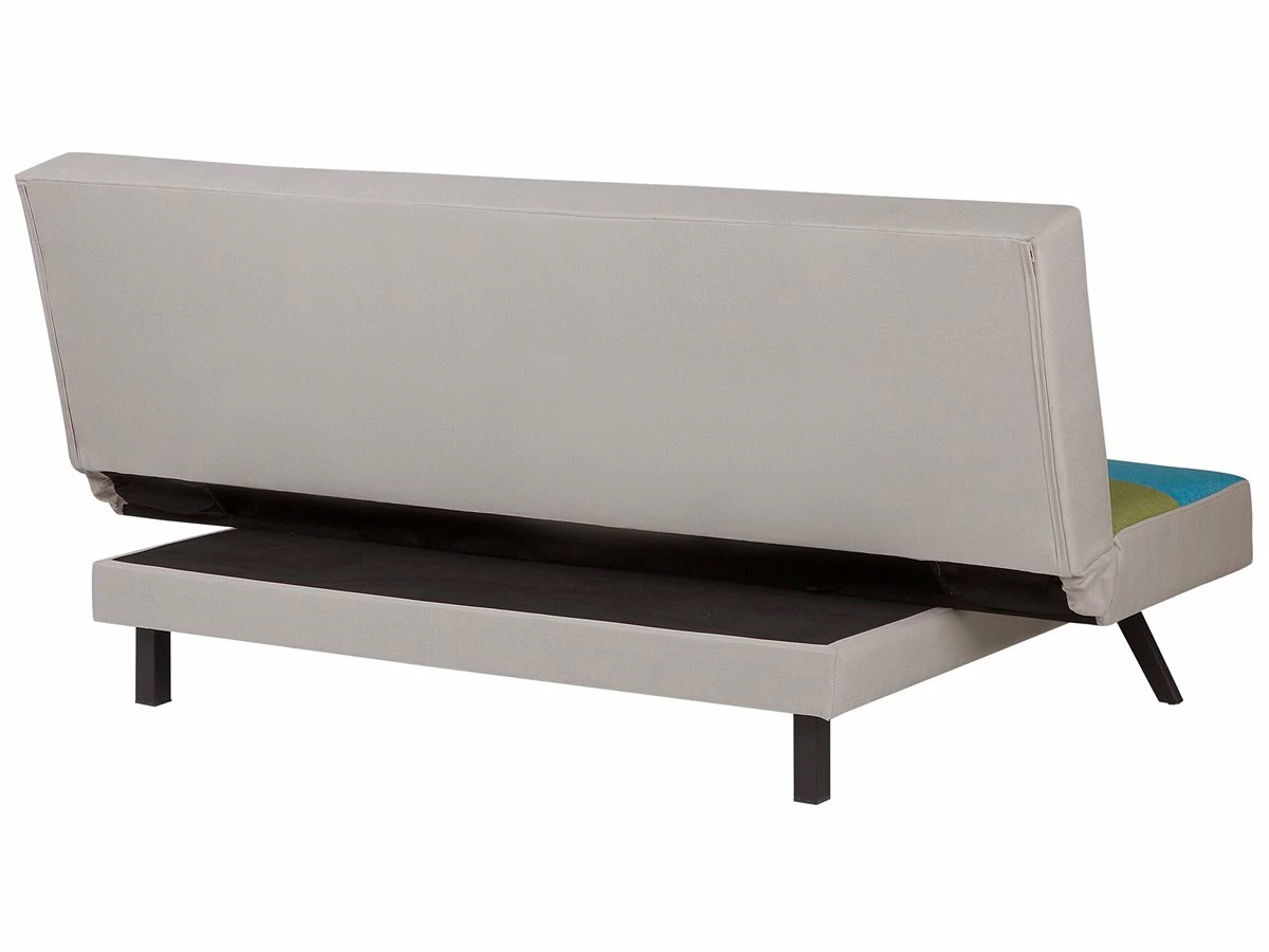 Elegancia, confort y alta calidad. Añade a tu interior este sofá cama de diseño moderno. Está fabricado a partir de tela de poliéster de alta calidad. La estructura de madera resistente y las patas de acero inoxidable ofrecen estabilidad. El respaldo complementa el estilo final. Combina con cualquier decoración contemporánea o ecléctica. Fácilmente convertible en cama. Detalles: Tipo de Producto: Sofá cama Estilo: Retro Color: Multicolor Tonalidad: Turquesa Tipo de material: Tejido Material principal: Poliéster Material adicional: Metal Material del relleno: Espuma Composición del Material: 100% Poliéster Estilo del apoyabrazo: Sin reposabrazos Apoyabrazo: No Parte posterior tapizada: Sí Protectores para patas: Sí Reclinable: Sí Fundas de cojín extraíble: No Construcción del asiento: Muelles ondulados Densidad de espuma del asiento: 60 kg/m3 Asientos para: 3 personas Función para dormir: Sí Mecanismo de abertura del sofa cama: Mecanismo click-clack Almacenamiento: No Dimensiones: Profundidad: 93 cm Espesor del asiento: 16 cm Altura del asiento: 40 cm Ancho: 188 cm Altura: 85 cm Superficie del asiento: 188×50 cm Superficie para dormir: 188×110 cm Peso: 36 kg Capacidad de peso por persona: 125 kg La oferta incluye: 1 x Sofá Ventajas: Convertible en cómoda cama, Increíblemente suave, Diseño elegante, Decorativo y funcional, Materiales de la más alta calidad, Completamente tapizado Información de montaje: Requiere montaje parcial. 20-40 min. Información adicional: A efectos de transporte, las patas están ocultas en un bolsillo en la parte inferior del asiento. Consejos de mantenimiento: Poliéster: 1.Aspire con un accesorio adecuado 2.Limpiar con champú seco y una esponja húmeda o un limpiador suave. Metal: 1.Para elementos de cobre o cromados, use agente abrillantador 2.Para evitar arañazos, no use limpiadores abrasivos 3.Limpie con un limpiador y un paño suave, seque después.