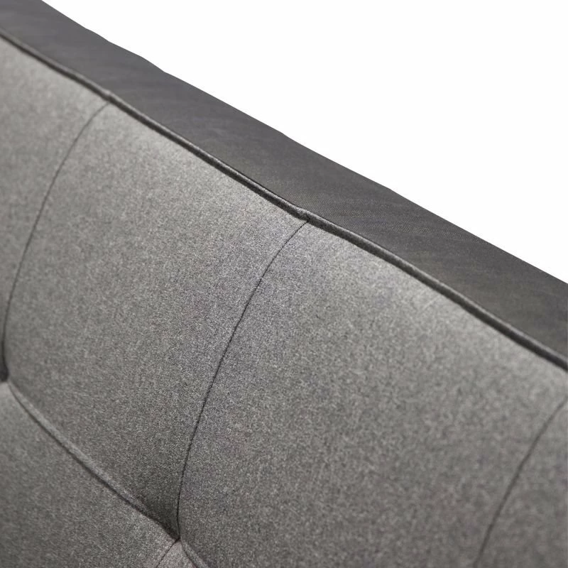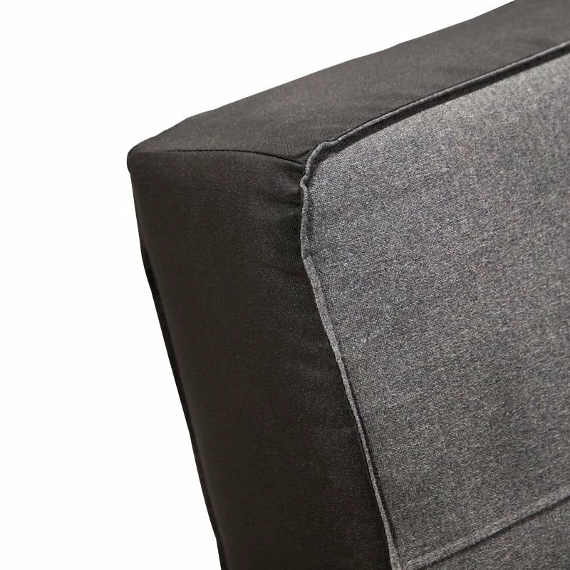 Está fabricado con una estructura de madera y tapizado en tela gris, además dado que el sofá-cama Ares está pensado para tener mucho uso, los laterales están tapizados con lona negra, de esta manera protegemos los cantos del sofá ante posibles rozaduras.