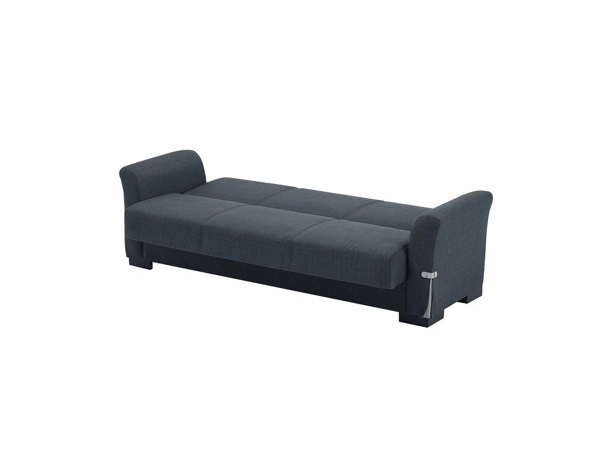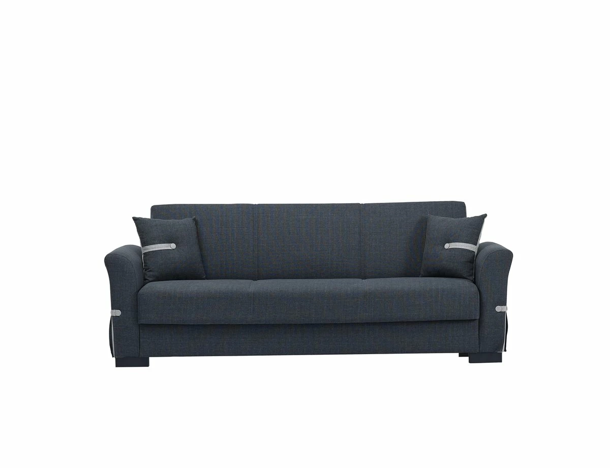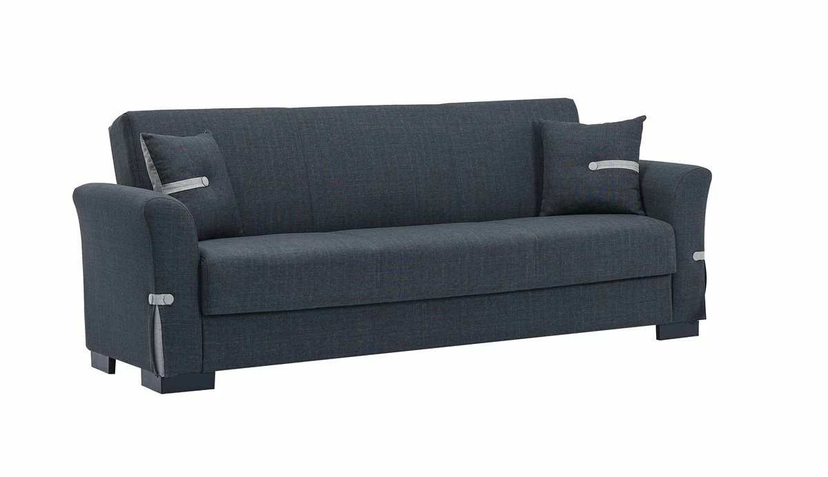 El sofá cama 3 plazas STELA en color antracita es el sofá que buscas si lo que necesitas es funcionalidad y comodidad en tu hogar. El arcón de su interior es la formula perfecta para ganar espacio de almacenamiento en tu salon. Además, la opción de transformarlo en cama de 102 x 190 cm, te dará la oportunidad de acojer a tus visitas mas deseadas. El sofá cama de 3 plazas STELA en color antracita es una opción funcional y elegante para cualquier hogar. Con un arcón en su interior y 2 cojines de color gris claro.