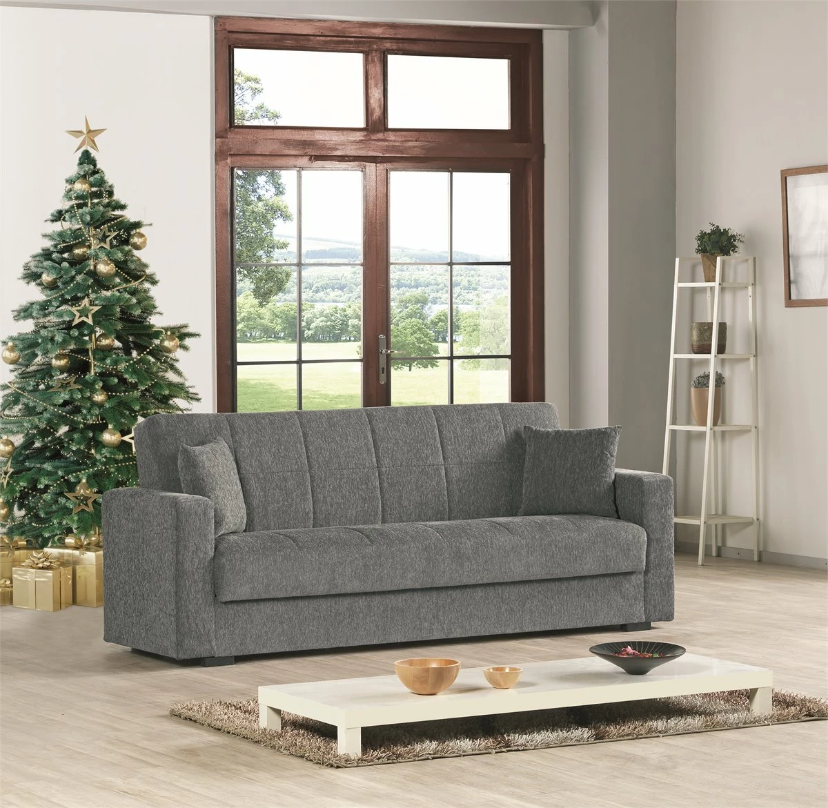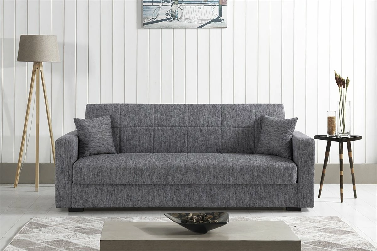 ¿Conoces esa molesta sensación de empezar a quedarte dormido en el sofá y tener que ir hasta la cama? El camino hasta el dormitorio puede hacerse muy, muy largo. Gracias al sofá cama NORA podrás dormir a pierna suelta en el mismo salón, si es lo que te apetece. Y es que, además de ser un comodísimo sofá tapizado en tela en el que sentarte y disfrutar de su confortable acogida, también puedes convertirlo rápidamente en una práctica cama de 181×103 cm. Cuenta además con un espacio de almacenaje en el que podrás guardar, por ejemplo, mantas o sábanas, para que estés siempre preparado ante cualquier imprevisto. Especialmente útil también si cuentas con invitados en casa, este sofá cama NORA hará las veces de cama y de sofá según lo que necesites en cada situación, siendo siempre igual de cómodo.