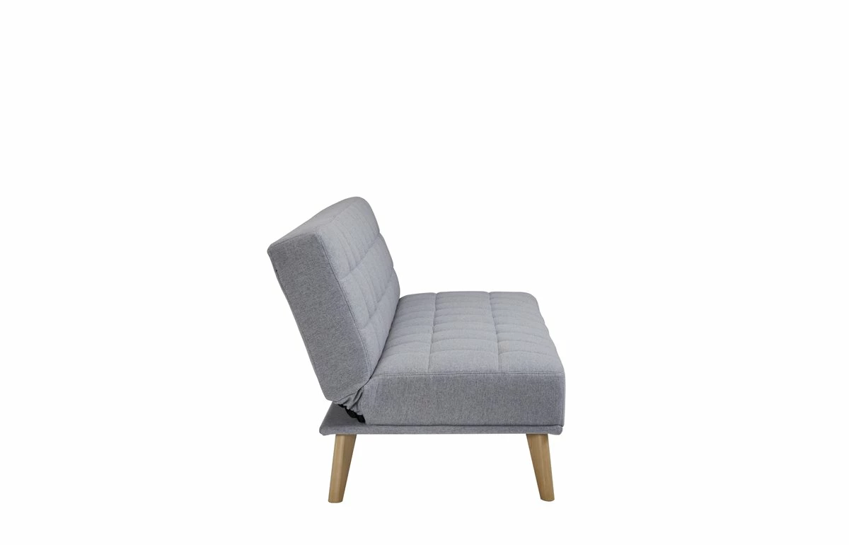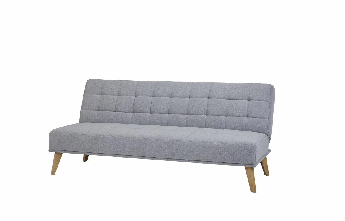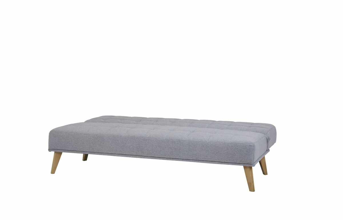 Convierte cualquier lugar de tu casa en una improvisada habitación. Con el sofá cama OLIVIA podrás, en solo unos segundos, tener una confortable cama preparada para tus invitados más exigentes. El sofá cama OLIVIA, además de ser funcional, está fabricado para ofrecerte lo mejor del diseño actual. Las líneas rectas y puras de la estructura y de los asientos contrastan con las patas inclinadas de madera, ese toque nórdico tan de moda. Además, su tapizado en tela y las costuras que crean formas cuadradas consiguen dar una sensación de calidez al conjunto. Si tus invitados no se conforman con poco, ofreceles lo mejor para su descanso con este sofá cama OLIVIA y disfrútalo tú de día.