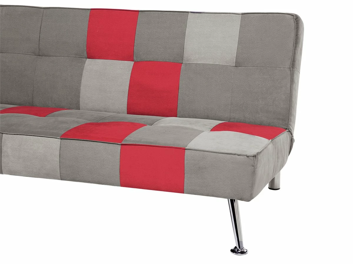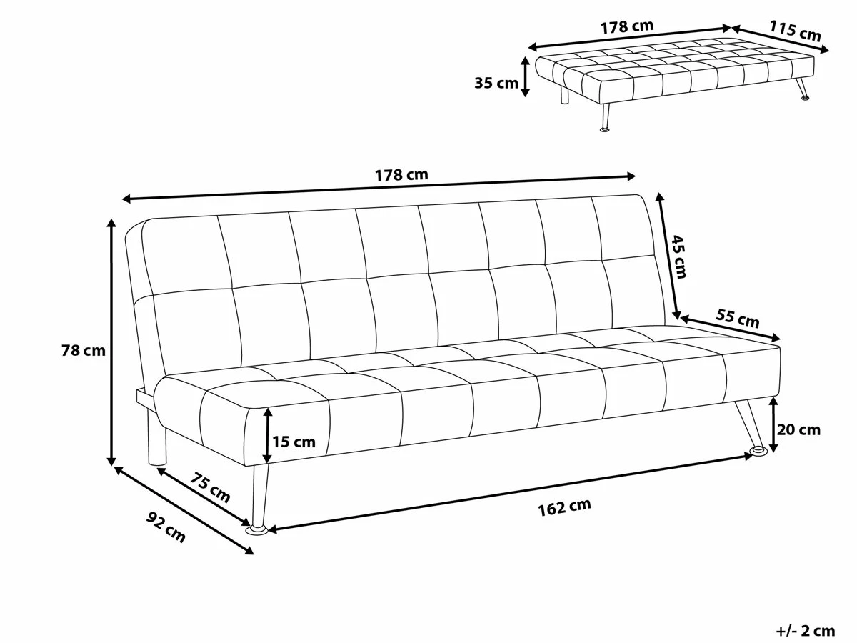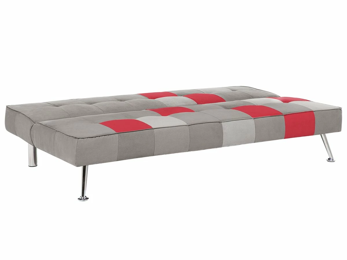 Sofá cama con diseño patchwork. Este sofá cama de diseño moderno es ideal para una sala de estar o dormitorio de dimensiones reducidas. Está fabricado a partir de terciopelo de alta calidad. El respaldo ajustable y el diseño sencillo sin reposabrazos combinan bien con cualquier interior de diseño moderno o con influencias retro. Las patas de metal garantizan estabilidad. Fácilmente convertible en cama gracias al mecanismo clic-clac incorporado. Detalles: Tipo de Producto: Sofá de 3 plazas Estilo: Moderno Color: Gris Tonalidad: Gris claro Tipo de material: Poliéster aterciopelado Material principal: Terciopelo Material adicional: Metal Material del relleno: Espuma Composición del Material: 100% Poliéster Estilo del apoyabrazo: Sin reposabrazos Apoyabrazo: No Parte posterior tapizada: Sí Protectores para patas: Sí Reclinable: No Fundas de cojín extraíble: No Construcción del asiento: Muelles ondulados Densidad de espuma del asiento: 50 kg/m3 Asientos para: 3 personas Función para dormir: Sí Mecanismo de abertura del sofa cama: Mecanismo click-clack Almacenamiento: No Dimensiones: Profundidad: 92 cm Espesor del asiento: 15 cm Altura del asiento: 35 cm Ancho: 178 cm Altura: 78 cm Superficie del asiento: 178×55 cm Superficie para dormir: 178×115 cm Peso: 29 kg Capacidad de peso por persona: 150 kg La oferta incluye: 1 x Sofá Ventajas: Convertible en cómoda cama, Diseño moderno, Decorativo y funcional, Tejido aterciopelado suave como la seda, Acolchado de alta calidad, Respaldo ajustable Información de montaje: Requiere montaje de las patas. 5-15 min. Consejos de mantenimiento: Terciopelo: 1.Aspire con un accesorio adecuado 2.Limpiar con champú seco y una esponja húmeda o un limpiador suave. Metal: 1.Para elementos de cobre o cromados, use agente abrillantador 2.Para evitar arañazos, no use limpiadores abrasivos 3.Limpie con un limpiador y un paño suave, seque después.