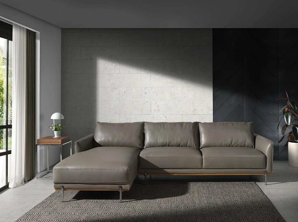 Sofá Chaiselongue (L en piel vacuno Gris Oscuro modelo 6153 Angel Cerdá S.L. Sofá chaise longue izquierda de diseño moderno tapizado en piel de origen vacuno de 1,25mm de espesor color Gris Oscuro. Un sofá de estilo único y minimalista, con una robusta estructura interna de madera de pino natural y patas de acero inoxidable oscurecido que le otorga ese toque de tendencia y elegancia que busca para su salón. El elegante y discreto detalle de la base en madera de haya vaporizada, es lo que crea ese toque distintivo y especial que todos queremos en nuestro hogar. ESTILO: Este sofá chaise longue izquierda tapizado en piel color gris Oscuro de la más alta calidad, aportará el toque original y elegante que busca para su hogar, fiel a las últimas tendencias en decoración. MULTIESTANCIA: Versátil y funcional, su elegante y sencillo diseño permite que encaje en cualquier tipo de salón, convirtiéndose en el gran protagonista de su salón. CALIDAD: Todos nuestros productos están fabricados con materiales de la más alta calidad, siendo garantía de mobiliario duradero y funcional. DECORACIÓN: Gracias a su diseño original con cojines en el respaldo independientes, extraíbles y desenfundables, conseguirá el toque diferente y sofisticado que busca para su sala de estar, a la vez que la mayor comodidad. DIMENSIONES Y CONFORT: El tamaño de sus asientos con relleno en espuma de 25 kg/m3 de densidad, y sus cojines desenfundables, le permitirá contar con el máximo confort en sus momentos de relax. CARACTERÍSTICAS: Un sofá chaise longue elegante que cuenta con la máxima capacidad de adaptación para sus momentos de relax. Disponible Chaise longue lado derecho.