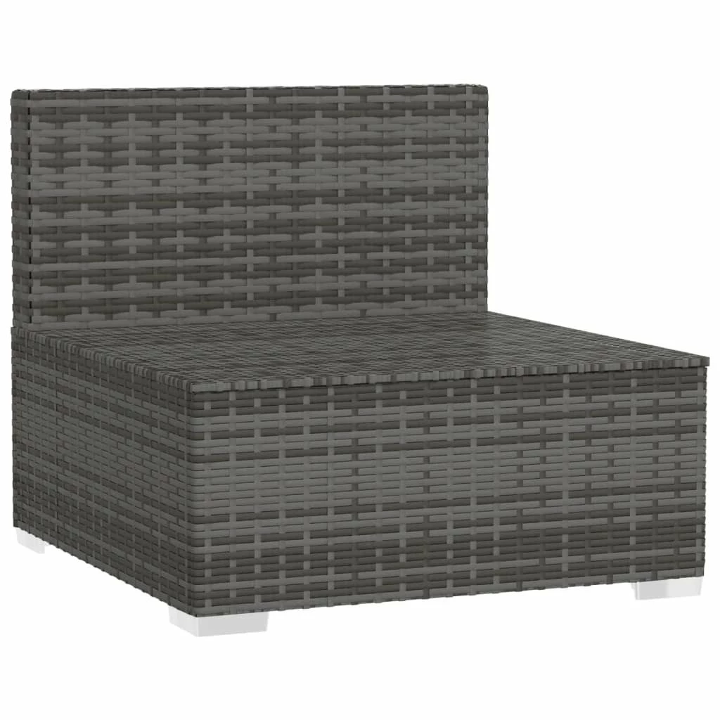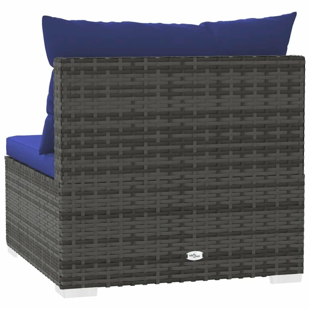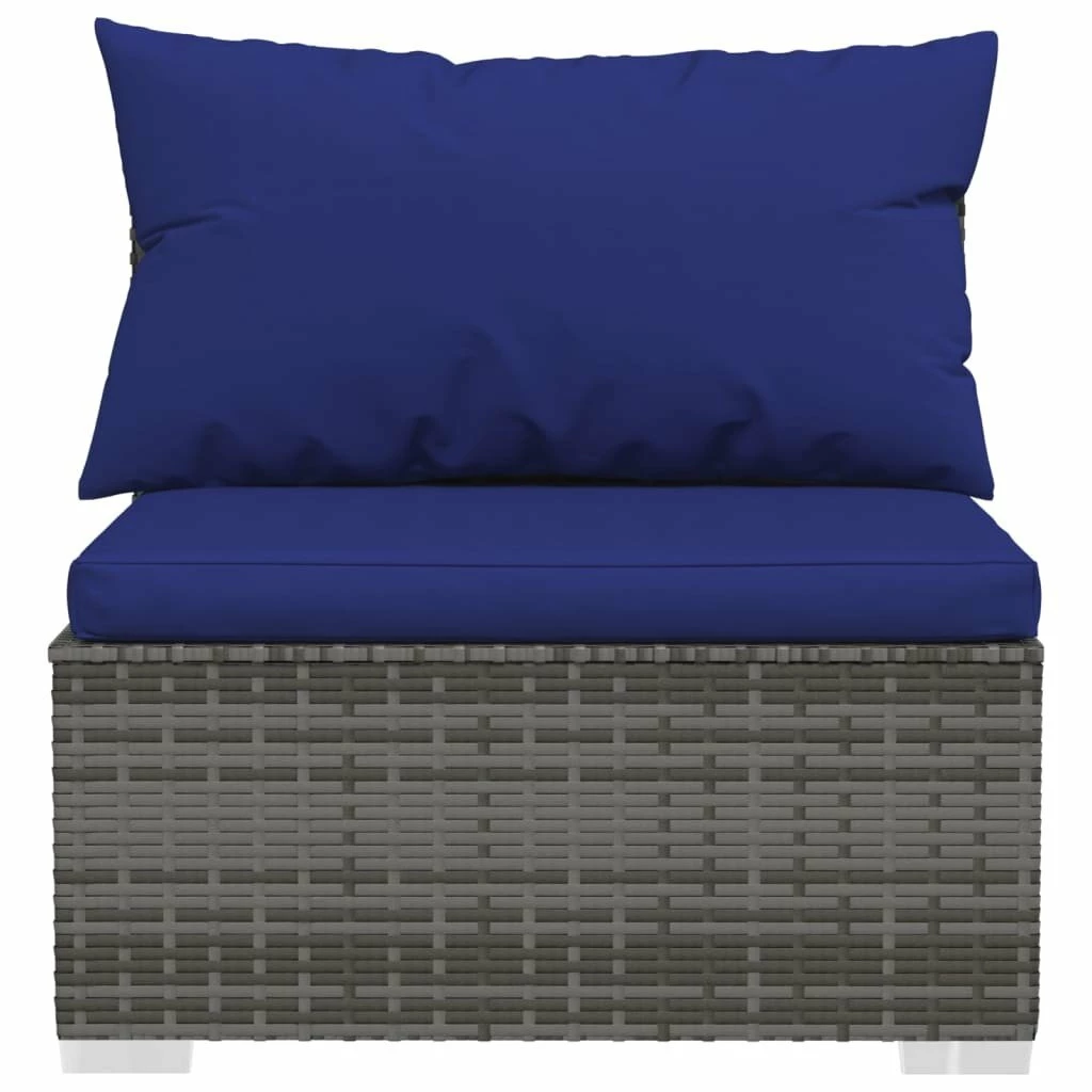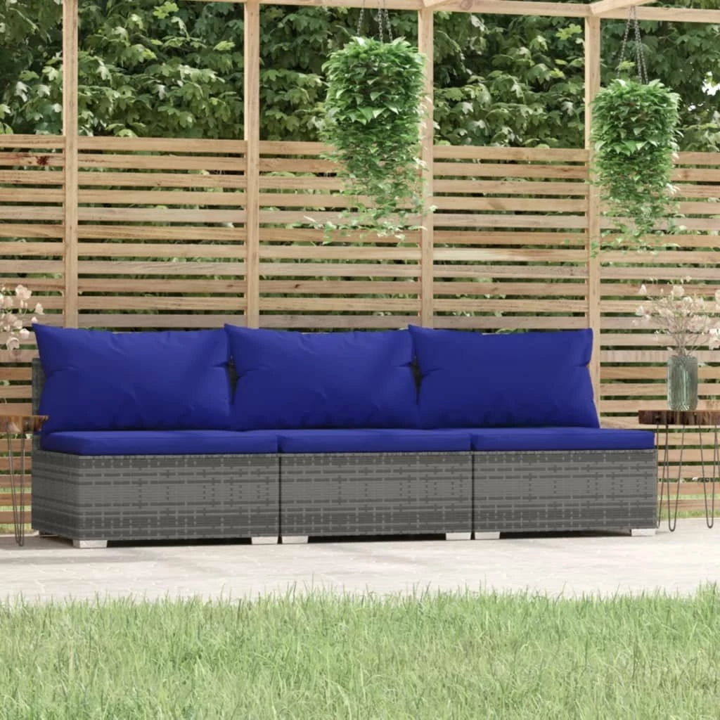 ¡Relájate y disfruta de tu tiempo libre con este elegante sofá de 3 plazas! Combinado con otros asientos, satisface diferentes necesidades. Estructura robusta: Este asiento para patio cuenta con una robusta estructura de acero con recubrimiento en polvo y patas de plástico cromado, que es muy duradero.Material de primera calidad: El sofá de jardín está diseñado con ratán PE resistente al agua, por lo que es fácil de limpiar, robusto y adecuado para usar a diario al aire libre.Diseño modular: El diseño modular también permite colocar el conjunto en cualquier disposición o combinarlos con otros segmentos modulares para satisfacer tus necesidades.Cómodos cojines y almohadas: Los cojines y las almohadas acolchados gruesos y extraíbles brindan una comodidad óptima para que te sientes al aire libre. Nota:Para prolongar la vida de tus muebles de exterior, te recomendamos que los protejas con una funda impermeable. Color: GrisColor del cojín: Azul oscuroMaterial: Ratán PE, acero con recubrimiento en polvo, plásticoMaterial del cojín/almohadón: Tela (100% poliésterDimensiones totales: 210 x 70 x 60,5 cm (largo x ancho x altoDimensiones de cada sofá central: 70 x 70 x 60,5 cm (largo x ancho x altoProfundidad del asiento: 63 cmAltura del asiento desde el suelo: 30 cmDimensiones del cojín de asiento: 70 x 63 x 3 cm (largo x ancho x grosorDimensiones del almohadón de respaldo: 70 x 40,5 cm (largo x anchoRequiere montaje: SíLa entrega contiene:3 x Sofás centrales3 x Cojines de asiento3 x Almohadas de respaldo
