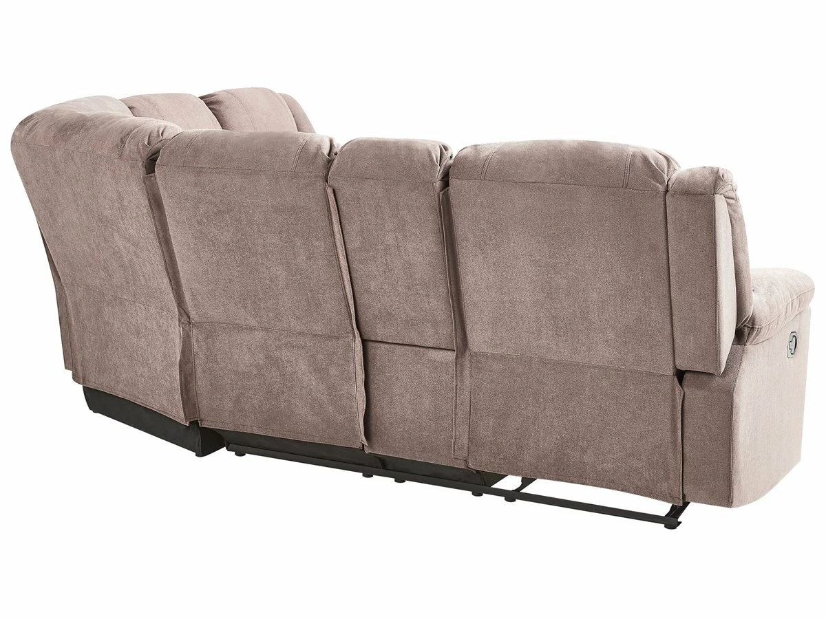 Sofá con reclinación. Añade a tu sala de estar este sofá esquinero de estilo moderno. Está fabricado a partir de tela de poliéster de alta calidad y resistente al desgaste. El diseño con líneas curvas y el acolchado grueso ofrecen la máxima comodidad. Los 2 asientos en las esquinas incluyen un ajuste manual que permite bajar el respaldo y subir el reposapiés. El reposabrazos central incluye un portavasos y un espacio de almacenaje oculto. Detalles: Tipo de Producto: Sofá reclinable Estilo: Moderno Color: Beige Tonalidad: Gris pardo Tipo de material: Tejido Material principal: Poliéster Material adicional: Madera contrachapada Material del relleno: Espuma Composición del Material: 100% Poliéster Forma: Forma de L Partes ajustables: Respaldo Tipo de ajuste: Manual Estilo del apoyabrazo: Con cojín Apoyabrazo: Sí Parte posterior tapizada: Sí Orientación: Izquierda Diseño: Sólido Construcción del asiento: Muelles ondulados Densidad de espuma del asiento: 24 kg/m3 Asientos para: 4 – 6 personas Dimensiones: Altura del apoyabrazos: 65 cm Profundidad: 196 cm Espesor del asiento: 45 cm Altura del asiento: 53 cm Ancho: 229 cm Altura: 94 cm Superficie del asiento: 195×56 cm Peso: 138 kg Capacidad de peso por persona: 150 kg La oferta incluye: 1 x Sofá esquinero Ventajas: Práctico compartimento de almacenamiento en el reposabrazos, Reposapiés y brazos ajustables, Brinda sensaciones de relax, Acolchado grueso, Respaldo acogedor y reclinable, Cómodos apoyabrazos, Diseño tradicional con un toque moderno Información de montaje: Requiere montaje parcial. 20-40 min. Consejos de mantenimiento: Poliéster: 1.Aspire con un accesorio adecuado 2.Limpiar con champú seco y una esponja húmeda o un limpiador suave.