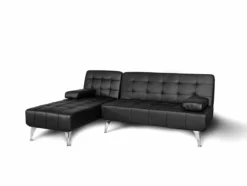 Sofá Chaise Longue AROA-XS, Polipiel De 3 Plazas Convertible En Cama, Color NEGRO. 198x150cm