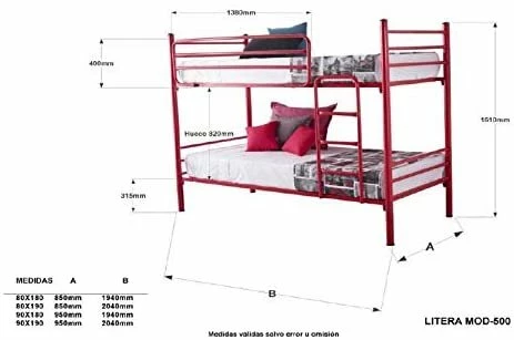 Venprodin | Fabricantes de muebles en España desde hace más de 10 años, | Entregamos y subimos el pedido hasta la puerta de su domicilio, | Todos nuestros muebles están hechos con aglomerado de alta densidad y melamina, | Litera metálica color Blanco, Medidas de : 161x204x95 cm (Alto x Ancho x FondoCabeceros formados con barras de acero de diámetro de 50 mm dándole mucha firmeza y estabilidad, Acabado en pintura epoxy anticorrosivaContiene dos somieres con barra de refuerzo central y bastidor de acero de 30×30 mm con laminas de somier embutidas en el bastidorSe trata de una litera metálica muy segura y funcional que puede ser utilizada tanto por niños como por adultos, en habitaciones de invitados o segundas residencias e incluso en hostelería, Cada cama aguanta 100 kgCOLCHONES NO INCLUIDOS, son necesarios colchones de 90×190 y máximo 20 cm de espesor, OPCIÓN COLCHÓN: «Venprodin Colchón Viscoelástico con VISCO Confort Fresh 3D Reversible Alta Gama de 20 cm»